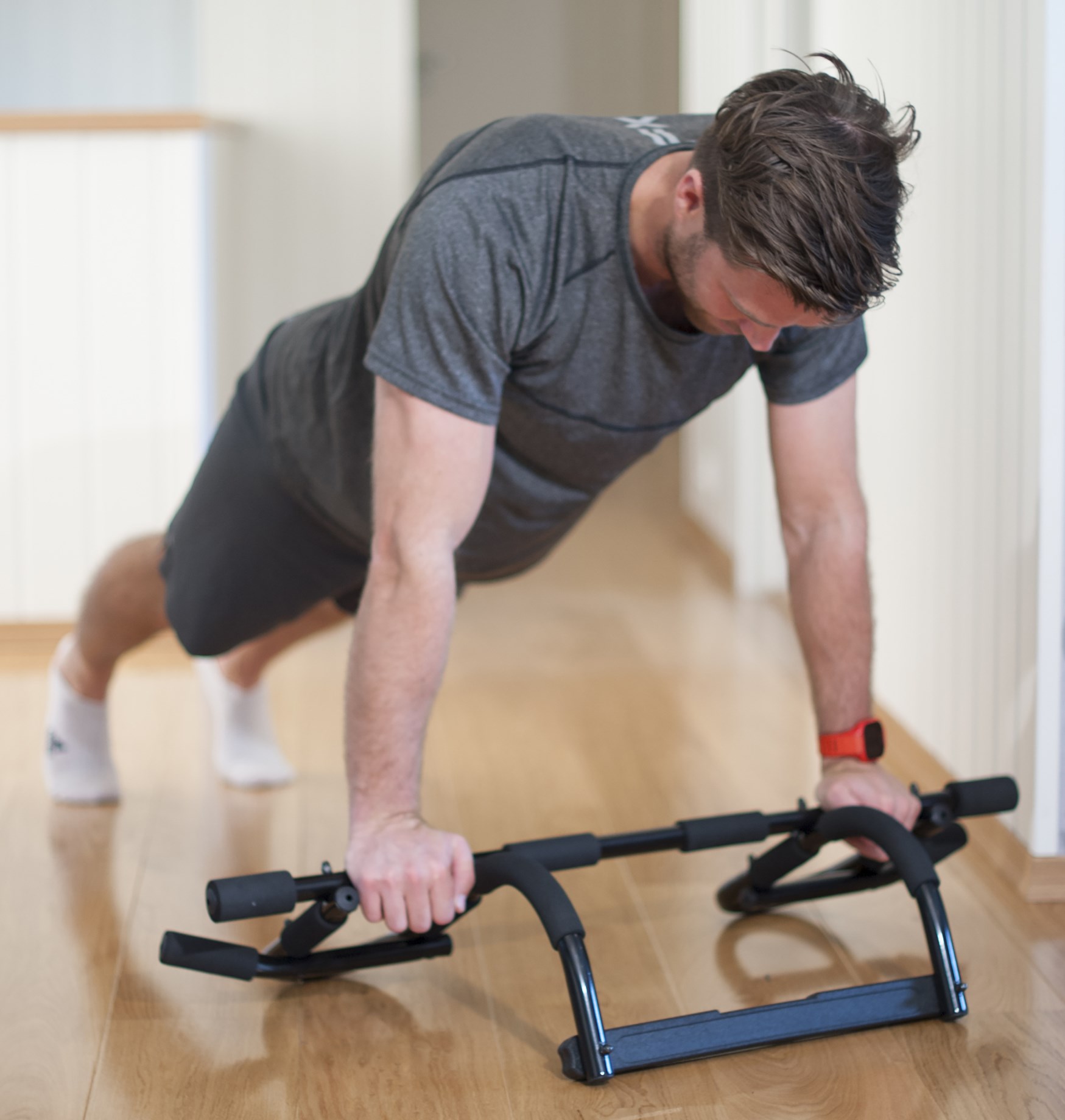 Abilica DoorGym Advanced on kotiharjoitusväline, jolla voit treenata koko ylävartaloa ja tehdä monia erilaisia harjoituksia. Voit helposti kiinnittää sen ovenpieliin leuanvetoja ja vatsaharjoituksia varten, ja ottaa sen alas lattialle punnerruksia varten. Mukana tulee käsinojat, joita voidaan käyttää muun muassa vatsaharjoituksiin.