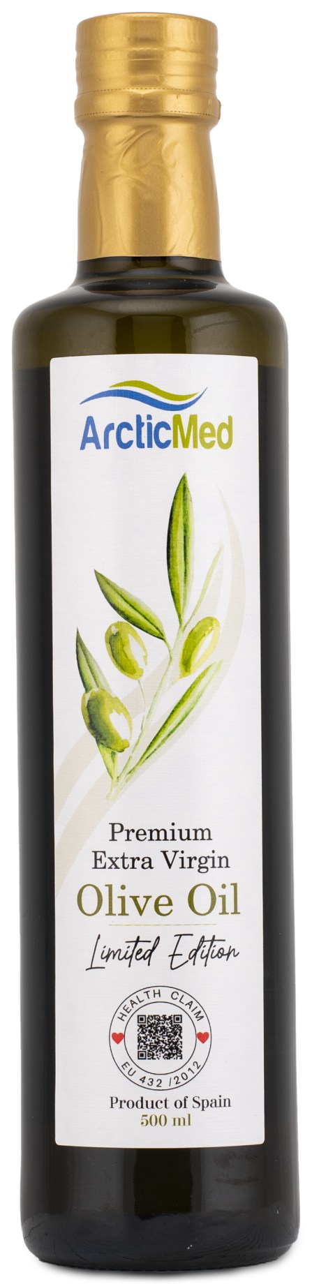 ArcticMed Extra Virgin Oliiviöljy on erinomainen valinta sinulle, joka etsit laadukasta oliiviöljyä! Tämä espanjalainen oliiviöljy on kylmäpuristettu ja valmistettu suoraan oliiveista, täysin ilman mekaanista käsittelyä. Korkean laadun takaamiseksi oliiviöljyn tulisi olla mahdollisimman vähähappoista – mitä matalampi, sen parempi. ArcticMed Extra Virgin Oliiviöljyn happopitoisuus on vain 0,15 eli huomattavasti alle viitearvon 0,8. Se sisältää runsaasti polyfenoleja sekä bioaktiivisia aineita. Sisältää myös skvalaania, joka on arvostettu ainesosa ihonhoidossa; sen uskotaan edistävän ihon kosteutusta ja joustavuutta. Lisäksi öljy on testattu huolellisesti. Ei sisällä torjunta-aineita.