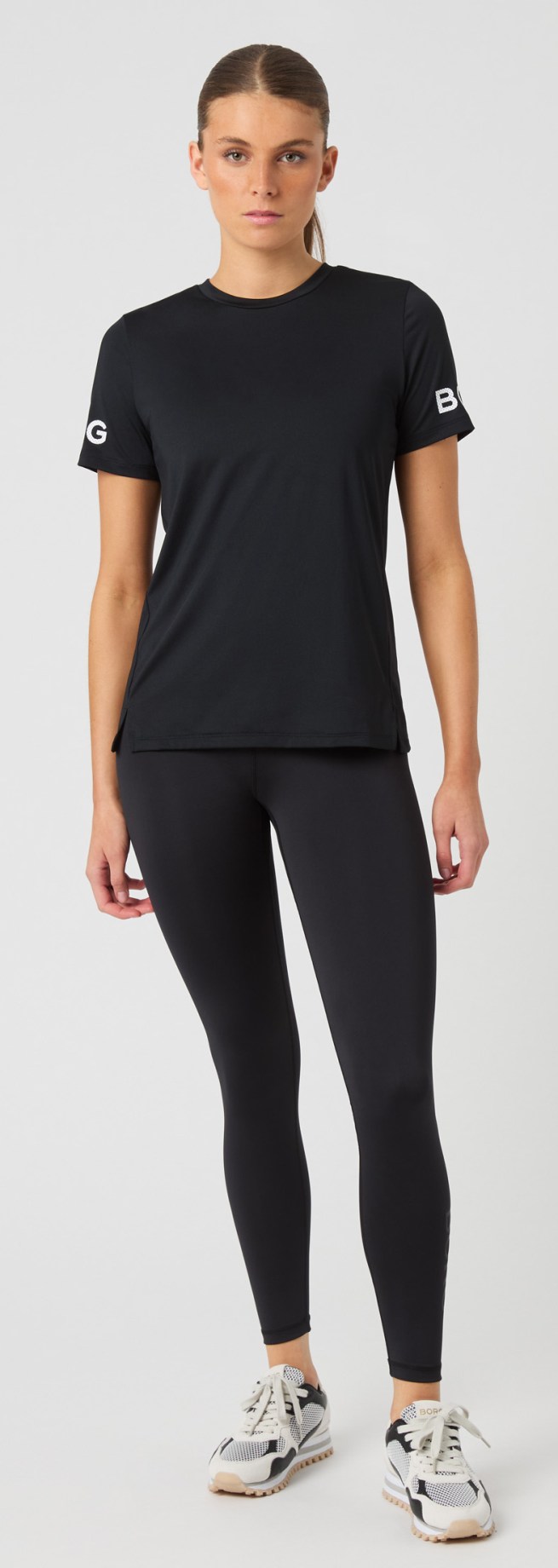 Björn Borgin naisten t-paita on pehmeä ja mukava treenipaita, joka on valmistettu pääosin kierrätetystä materiaalista. Siinä on pyöristetty helma, sivuhalkiot erinomaisen liikkuvuuden takaamiseksi ja normaali istuvuus. Björn Borg -painatus hihoissa luo tyylikkään ja urheilullisen ilmeen. Täydellinen sekä hikisiin että rauhallisempiin harjoituksiin!