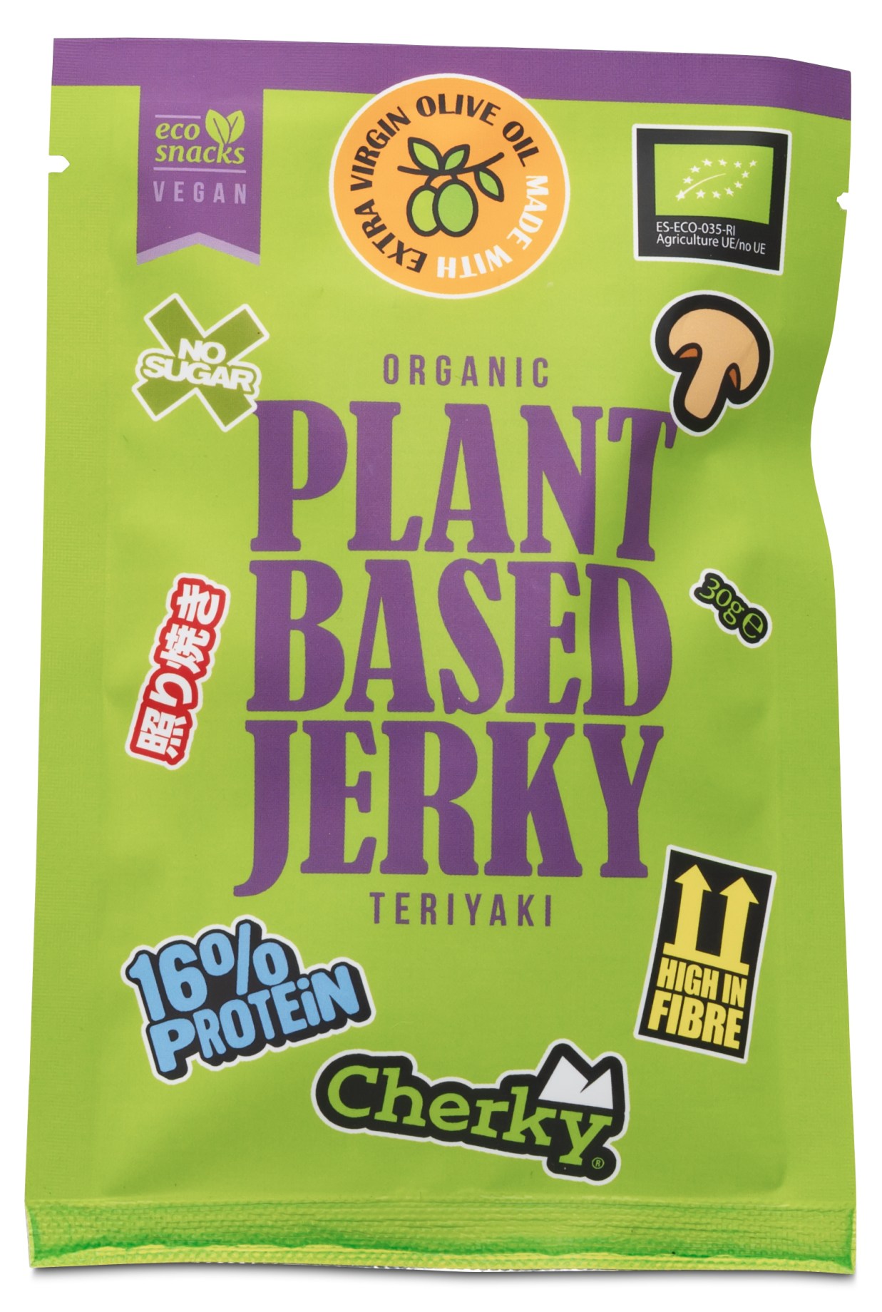 Cherky Foods Plantbased Jerky Eko on shiitakesta ja tamarikastikkeesta tehty kasvipohjainen jerky. Maukas proteiinibuusti, jossa shiitaken syvä umami yhdistyy tamarin suolaisuuteen ja makeuteen, mausteisiin sekä tilkkaan neitsytoliiviöljyä. Rakenne on "lihaisa" ja tarjoaa miellyttävän purutuntuman, kaukana tavallisista kuivatuista hedelmistä tai vihanneksista.