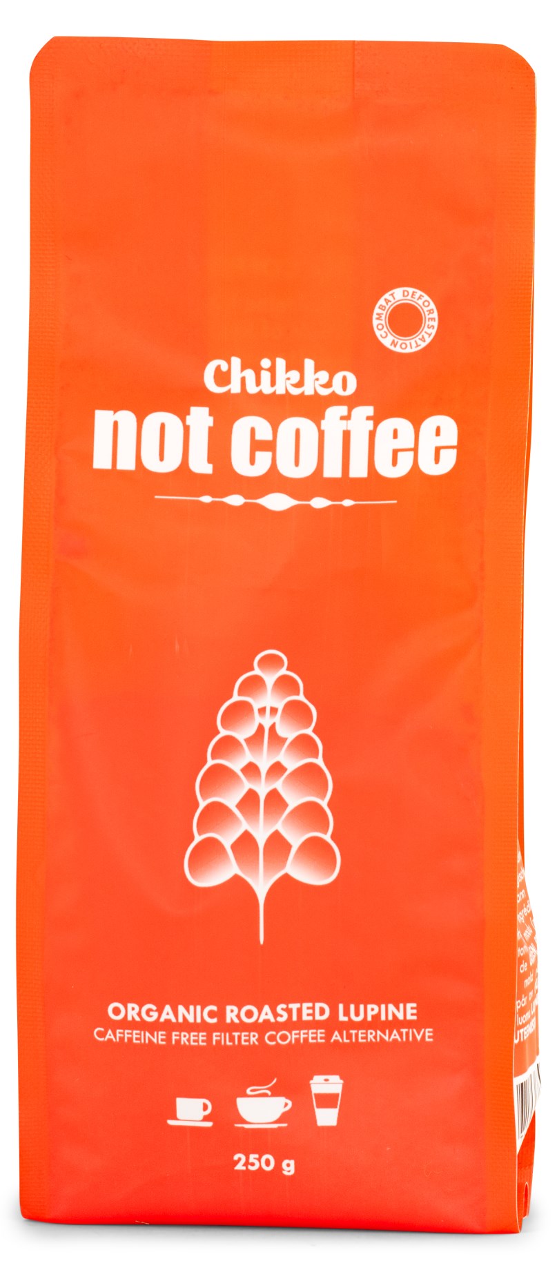Chikko Not Coffee Kahvivaihtoehto Lupiinista on kofeiiniton kahvivaihtoehto, joka voidaan sekä keittää että hauduttaa. Tämä tuote on täysin puhdas ilman lisäaineita. Täydellinen sinulle, joka etsit kätevää ja maukasta vaihtoehtoa kahvikuppiin!