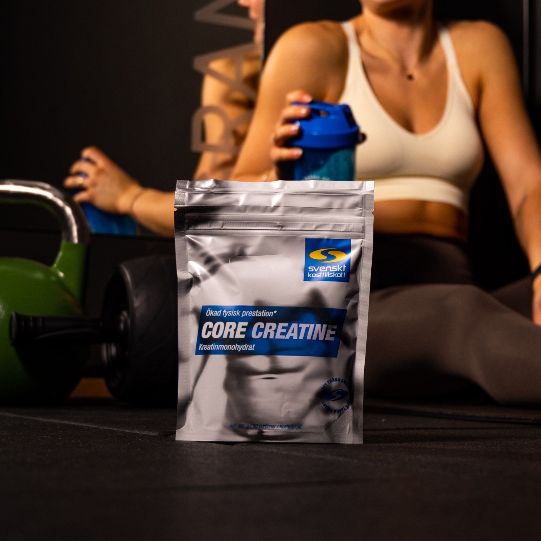 Kreatiini on helpottaa kehon kykyä muuttaa varastoitu energia liike-energiaksi. Sitä on luonnostaan ruoassa ja se tuotetaan ravinnosta saamamme proteiinin aminohapoista. Kreatiinia on korkeissa pitoisuuksissa lihassa ja kalassa, mutta saadaksemme kreatiinin suorituskykyä parantavat vaikutukset meidän pitäisi syödä suuria määriä näitä elintarvikkeita. Esimerkiksi yksi annos Core Creatine sisältää yhtä paljon kreatiinia kuin noin 1,5 - 2,5 kg raakaa kalaa, kalalajista riippuen. On vaikea saada näin suurta määrää kreatiinia ravinnosta, minkä vuoksi ravintolisät ovat suosittu täydennys ruokavaliolle.