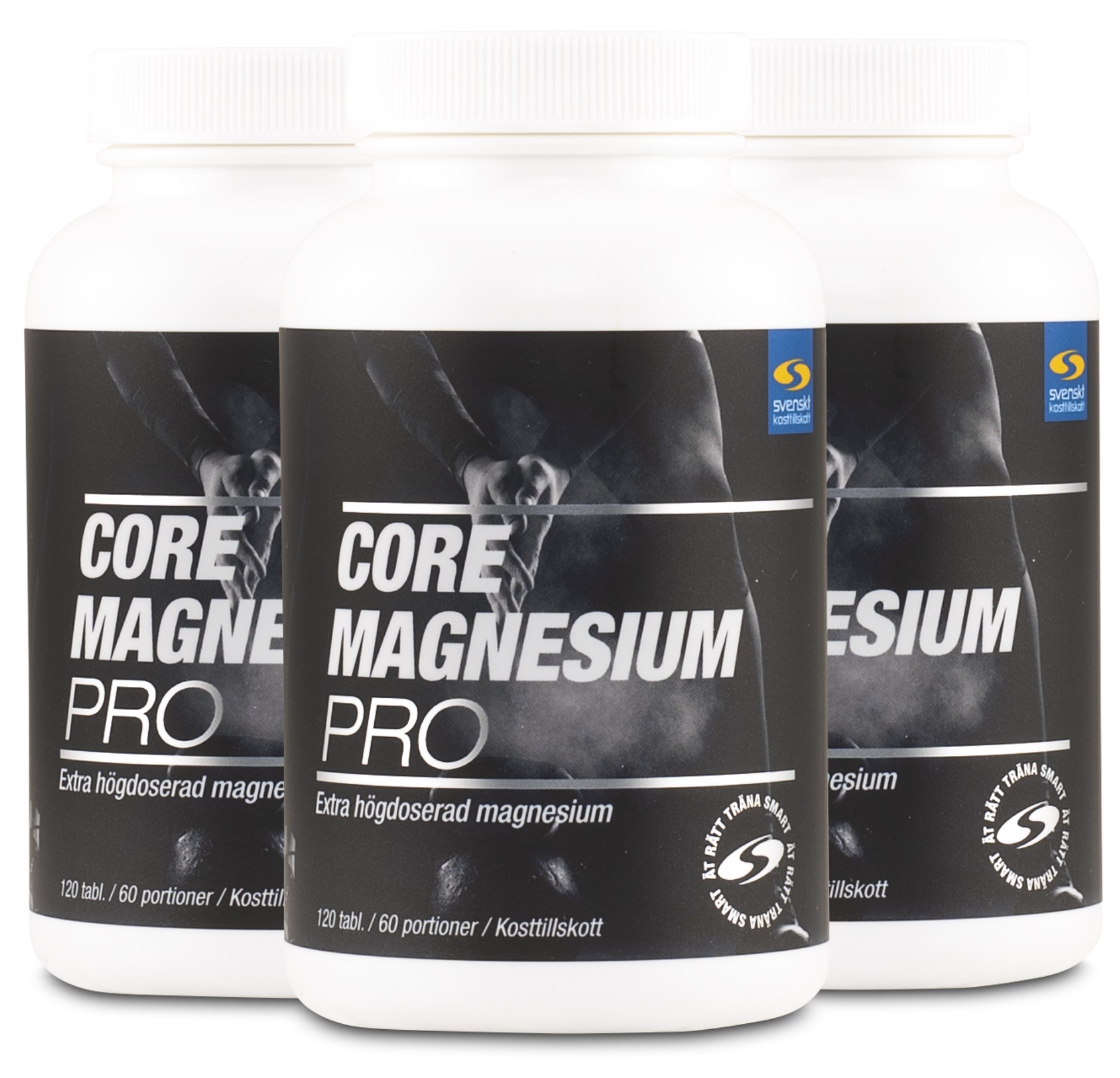 Core Magnesium Pro on erityisesti kehitetty sinulle, joka haluat parasta magnesiumlisää aktiiviseen elämäntyyliin. Etsintäsi on ohi - Core Magnesium Pro tarjoaa sekä suuren määrän (350 mg) aktiivista magnesiumia annosta kohti, että lisäksi magnesiumia kahdesta arvostetusta muodosta. Mukana on magnesiumsitraattia, joka imeytyy hyvin kehoon, sekä magnesiumbisglysinaattia, joka on yksi tunnustetuimmista muodoista ja lisäksi vatsaystävällinen. Suositeltu annostus on 1-2 tablettia päivässä.