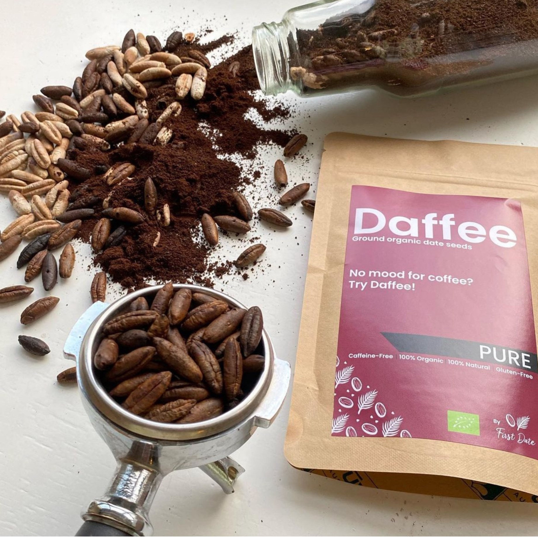 Daffee Kofeiiniton Taatelikahvi mullistaa aamukahvisi aromaattisella kahvilla, joka on tehty paahdetuista ja jauhetuista luomutaatelinsiemenistä. Kahvi on vapaa kofeiinista, väriaineista, gluteenista ja säilöntäaineista, ja se valmistetaan kuten aivan tavallinen kahvi. Se on luontaisesti runsas kuitujen, raudan, mineraalien ja antioksidanttien suhteen. Taatelikahvia on saatavana myös useissa herkullisissa mauissa, kuten kardemumma, kaneli ja appelsiininkuori. Löydä uusi suosikkikahvisi ja aloita päiväsi oikealla tavalla!