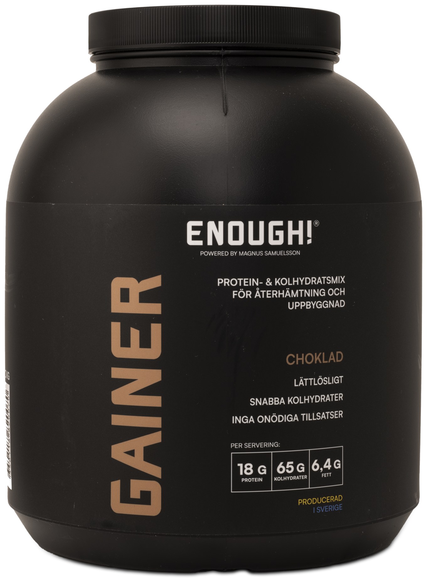 Enough Gaineri on sinulle, joka haluat lisätä lihasmassaa, tehostaa palautumista ja nostaa painoa kestävällä tavalla. Tämä gaineri yhdistää nopeat hiilihydraatit ja ruotsalaisen, korkealaatuisen heraproteiinin, jotka tarjoavat keholle nopeasti energiaa ja ravintoa - täydellinen treenin jälkeen tai välipalana, kun tarvitset energiaa ja lisätankkausta. Enough Gaineri on kehitetty yhteistyössä ravitsemusasiantuntijoiden, lääkäreiden ja ruotsalaisten viljelijöiden kanssa - painottaen toimivuutta, kestävyyttä ja tuloksia ilman kompromisseja. Tämä gaineri sopii sinulle, joka treenaat kovaa ja tarvitset nopean ja vaivattoman tavan täydentää energiaa ja kaloreita palautumisen ja lihasten rakentamisen tueksi, sekä sinulle, jolle riittävän kalorimäärän saaminen päivän aikana on haastavaa.
