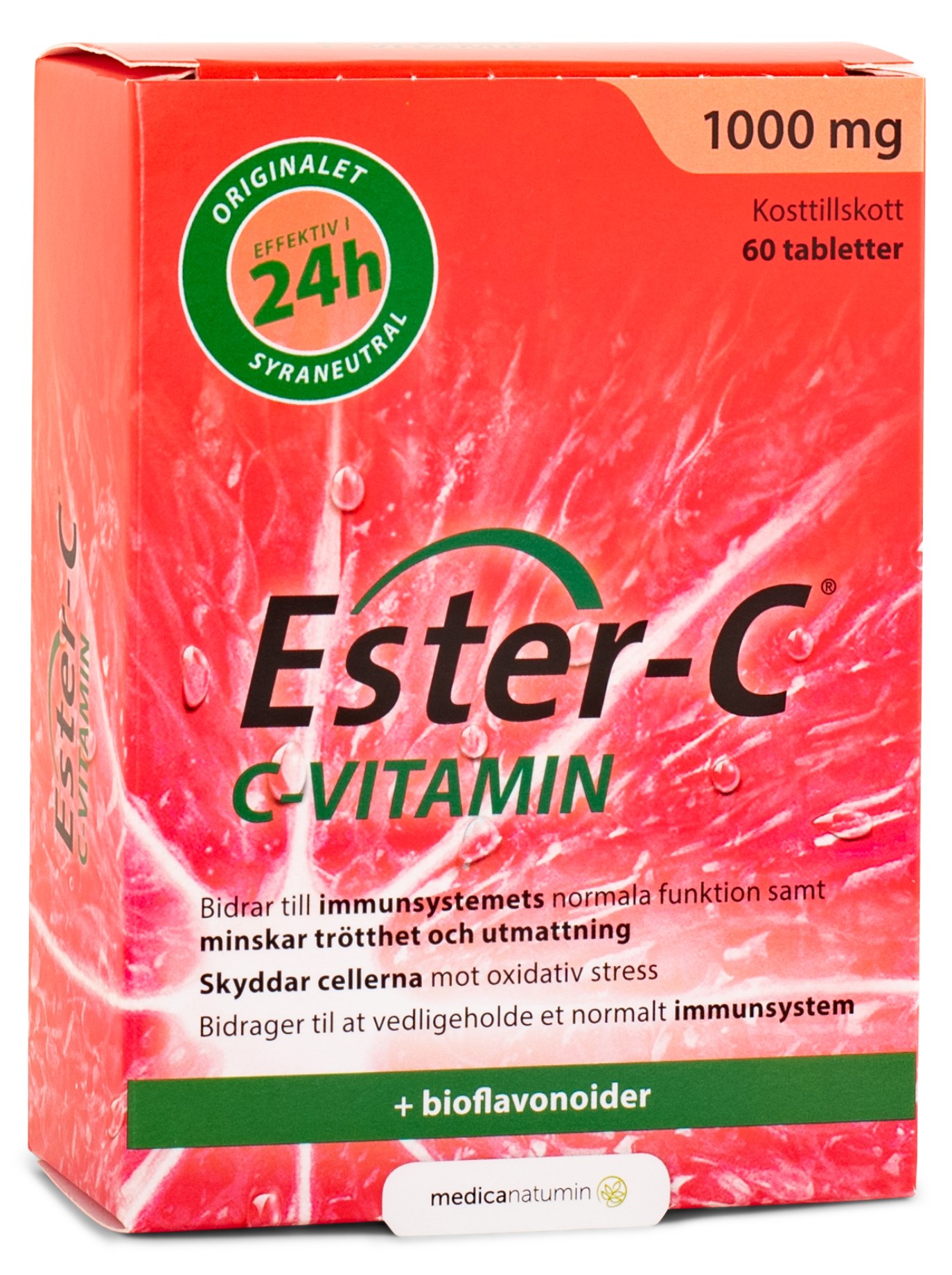 Ester-C 1000 mg on patentoitu kalsiumaskorbaatin muoto, joka on happoneutraali ja helposti imeytyvä kehoon. Ester-C:n happoneutraalius tekee siitä lempeämmän herkille vatsalle. Ester-C 1000 mg on lisäksi vahvistettu bioflavonoideilla, jotka toimivat antioksidantteina.