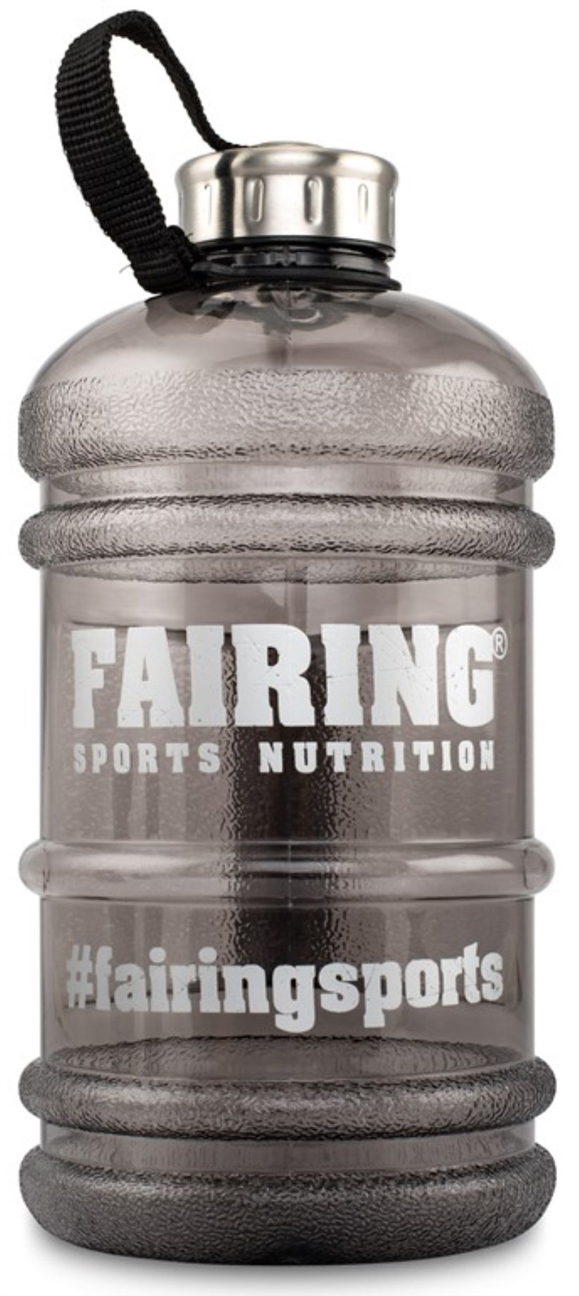 Joskus tavallinen pieni vesipullo ei riitä. Kun tarvitset enemmän nestettä, tämä Fairing-vesikanisteri on erinomainen valinta! Tämä nuovikanisteri vetää peräti 2,2 litraa nestettä, se on BPA-vapaa ja siinä on mukavasti käteen sopiva kahva, joka tekee sen käsittelystä helppoa. Voit käyttää sitä täyttämiseen tai juoda suoraan siitä. Käytännöllinen kierrekorkki pysyy tiiviisti paikallaan ja on kiinnitetty nauhaan pullonkaulan ympärillä, jotta se ei katoaisi. Iso logo edessä ja läpikuultava musta väri.