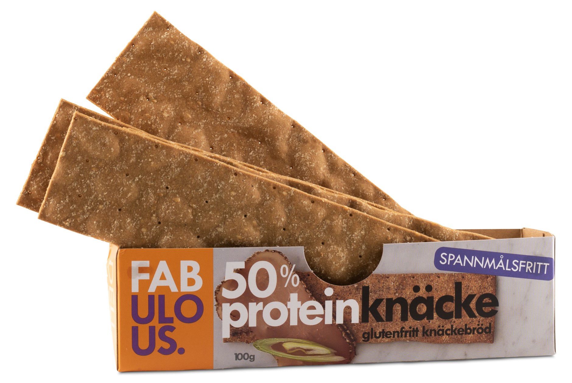 FAB Deli 50% Proteiininäkkileipä Fjällbergetin leipomosta Hoforsissa on herkullinen näkkileipä, jossa on kokonaiset 50% proteiinia. Näkkileipä on täysin gluteeniton ja oikein suolattu erityisen hyvän maun takaamiseksi. Sopii täydellisesti proteiinipitoisen välipalan perustaksi tai osaksi proteiinirikasta aamiaista. Päällystä suosikkilisukkeillasi!