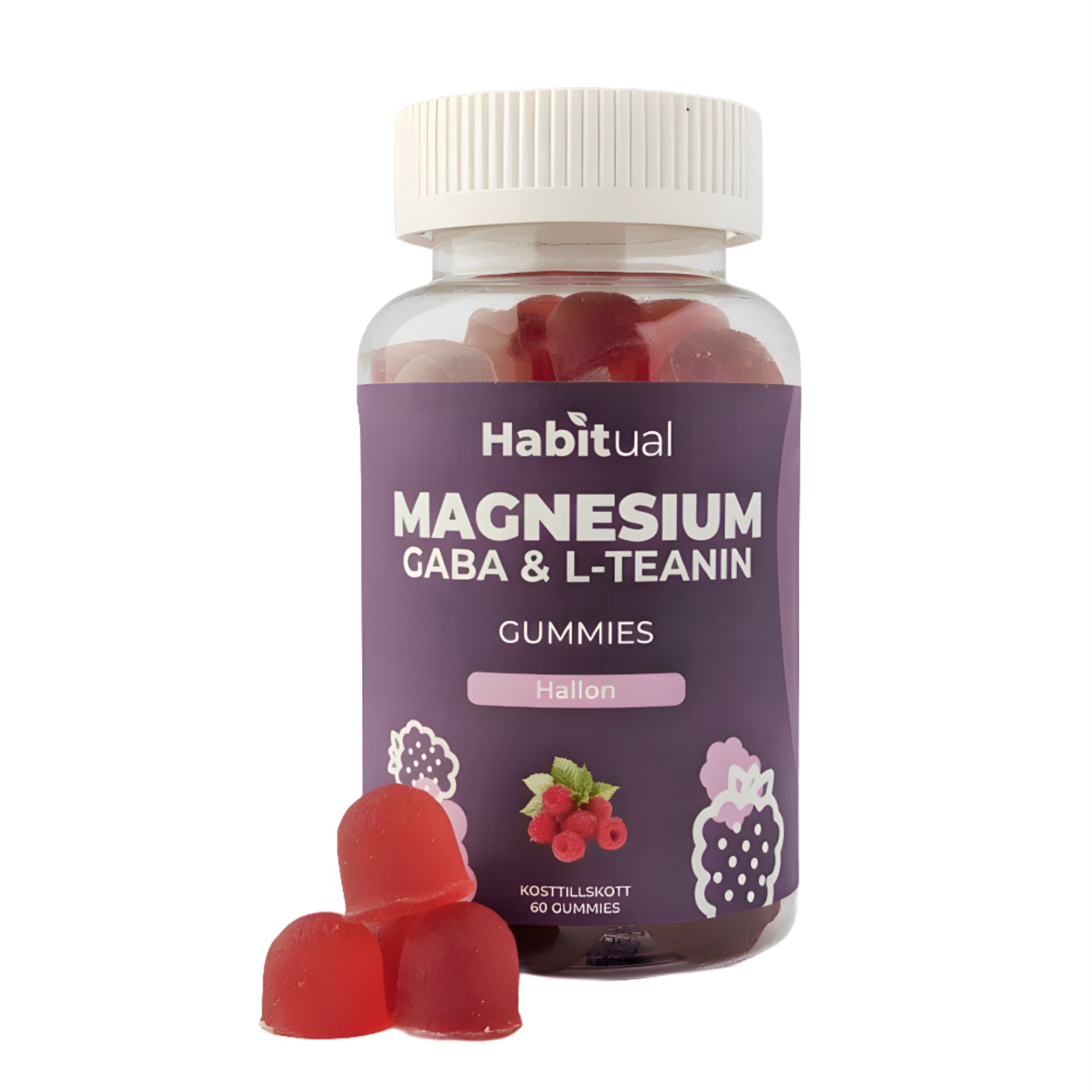 Pienoiskuva Habitual Magnesium L-teaniini- & GABA-gummit, Vadelma, 60 Gummies
