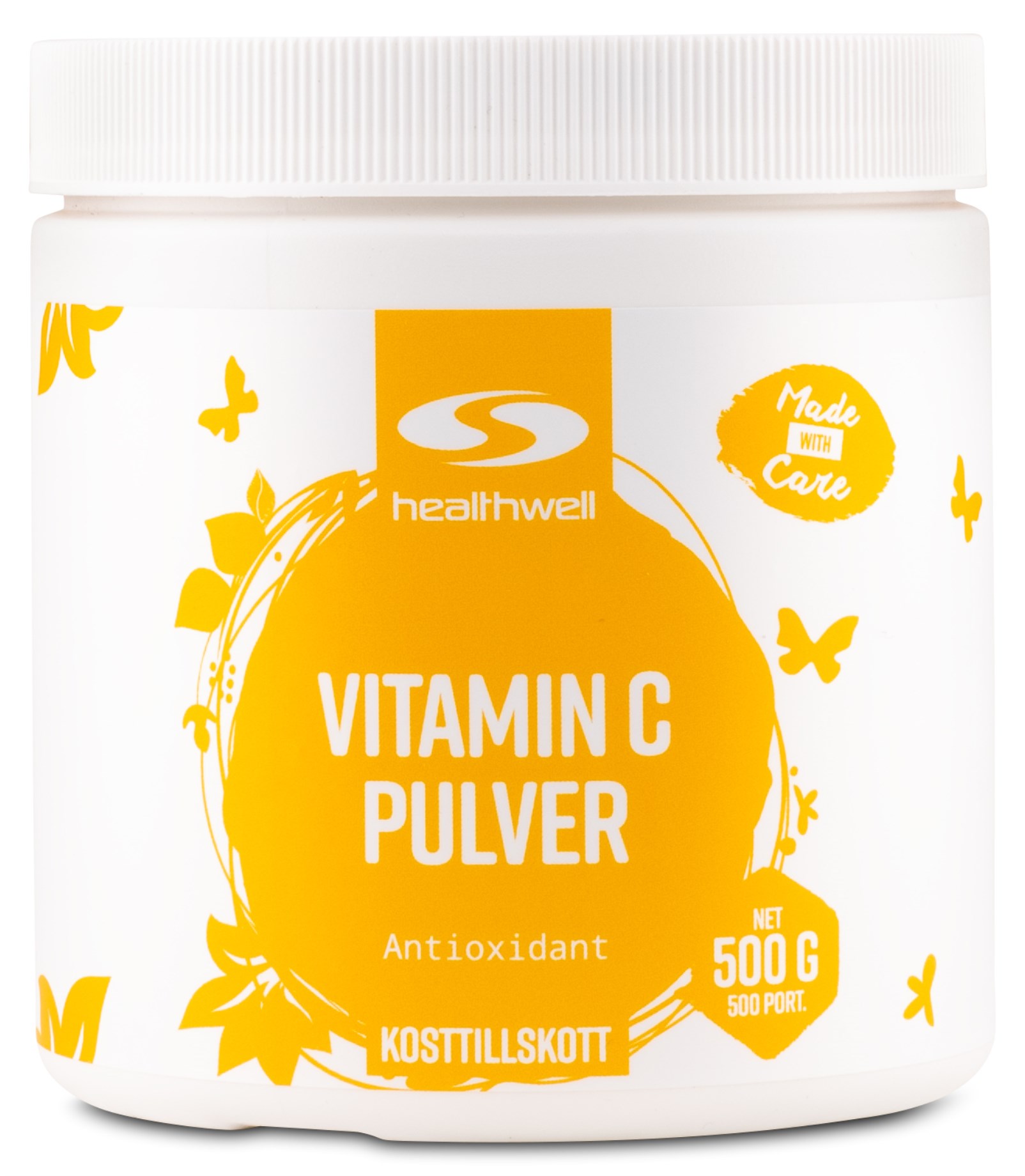 Healthwellin C-vitamiinijauhe koostuu 100 % l-askorbiinihaposta, joka on puhdasta C-vitamiinia. C-vitamiinilla on useita tärkeitä toimintoja kehossa, muun muassa se edistää immuunijärjestelmän ja hermoston normaalia toimintaa. C-vitamiini toimii myös antioksidanttina, joka suojaa soluja oksidatiiviselta stressiltä. Antioksidantit auttavat suojaamaan kehon soluja vapailta radikaaleilta, joita voi syntyä stressin yhteydessä.