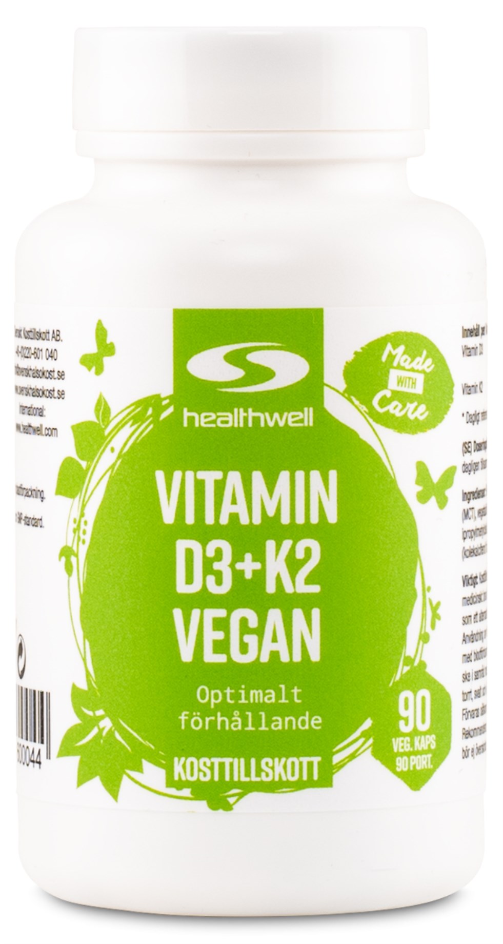 Sekä D- että K-vitamiinit ovat rasvaliukoisia ja vaativat siksi rasvaa imeytyäkseen kehoon. Tehon optimoimiseksi sinun tulisi ottaa Healthwell D3+K2-Vitamiini aterian yhteydessä. Tämä voi hyödyttää myös kalsiumpitoisten elintarvikkeiden yhteydessä, koska D-vitamiini parantaa kalsiumin imeytymistä.