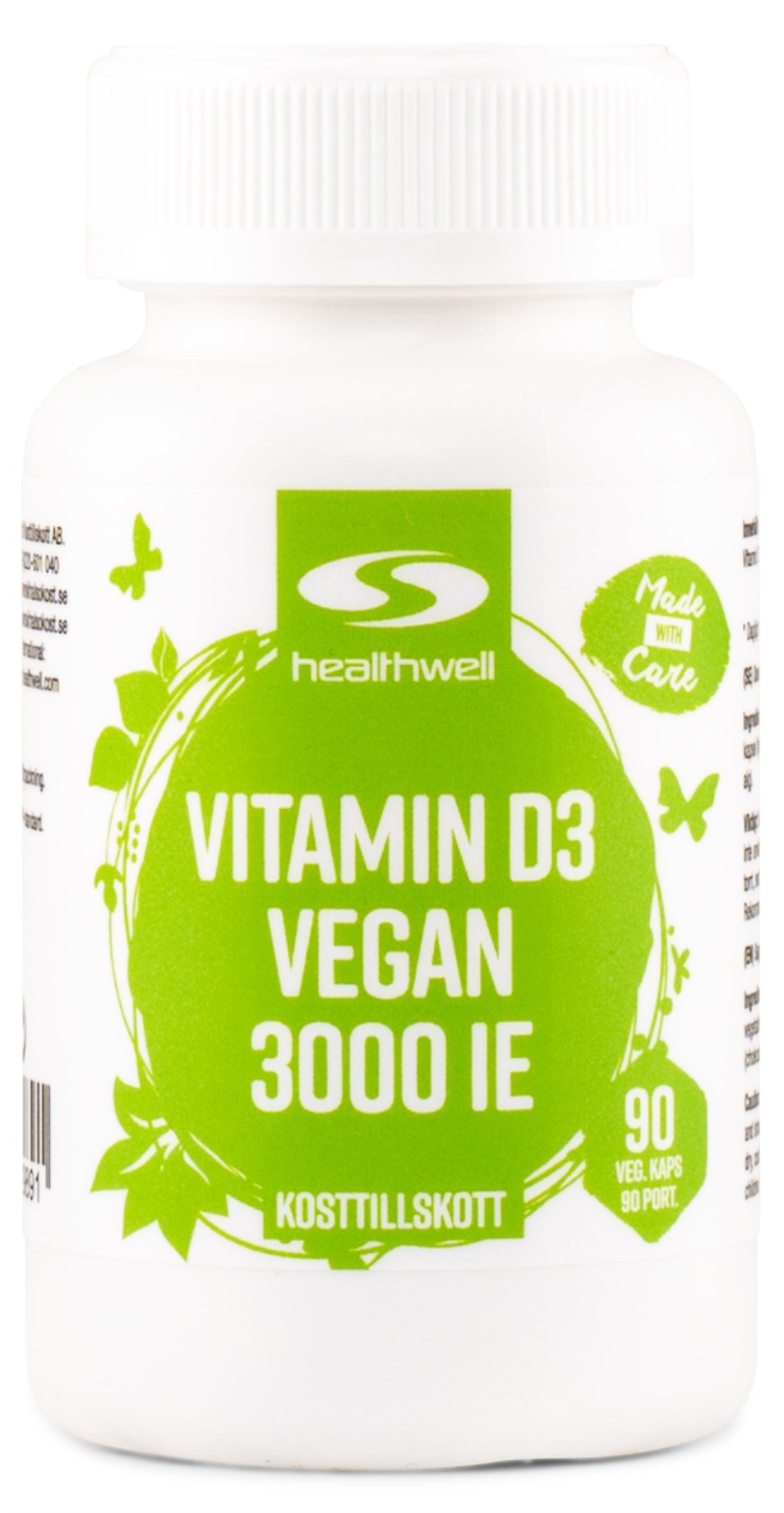 Vegaaninen D-vitamiini Healthwelliltä on D3-vitamiinin lähde, erityisesti kehitetty vegaaneille ja kasvissyöjille. Tämä tuote saadaan luonnollisesti levistä, mikä on erinomainen D3-vitamiinin lähde. Parantaakseen elimistön imeytymistä, Vitamin D3 Vegan 3000 IE on rikastettu kookosperäisellä MCT-öljyllä ja tulee pienissä, helposti nieltäviksi tarkoitetuissa kapseleissa.