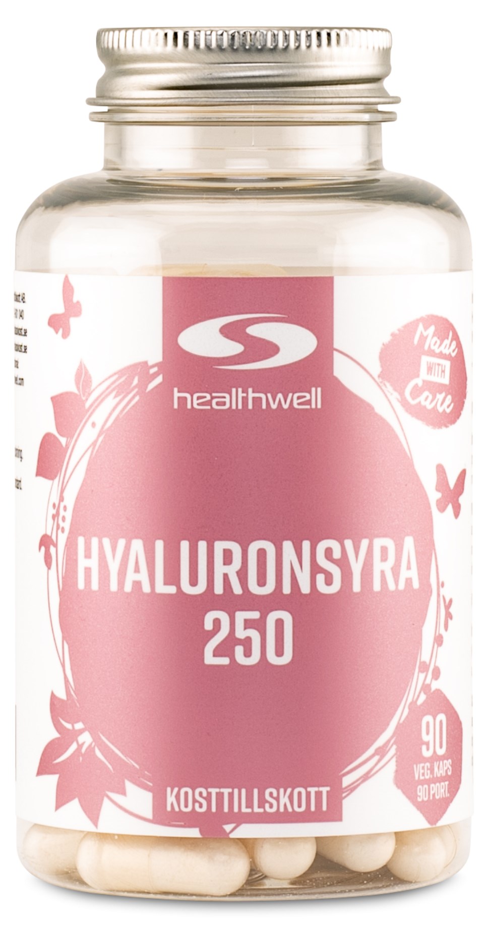 Healthwell Hyaluronihappo 250 on täydellinen sinulle, joka koet, että ihosi ja niveltesi tarvitsevat hieman lisähuolenpitoa! Hyaluronihappoa esiintyy luonnostaan kehon nivelnesteessä ja ihossa, mutta sen tasot alkavat vähentyä iän myötä. Healthwell Hyaluronihappo 250:llä voit antaa sekä nivelillesi että ihollesi ylimääräisen ravintoboostin. Tuote sisältää hyaluronihapon lisäksi C-vitamiinia kätevissä kapseleissa. Suositeltu annostus on 1 kapseli päivittäin.