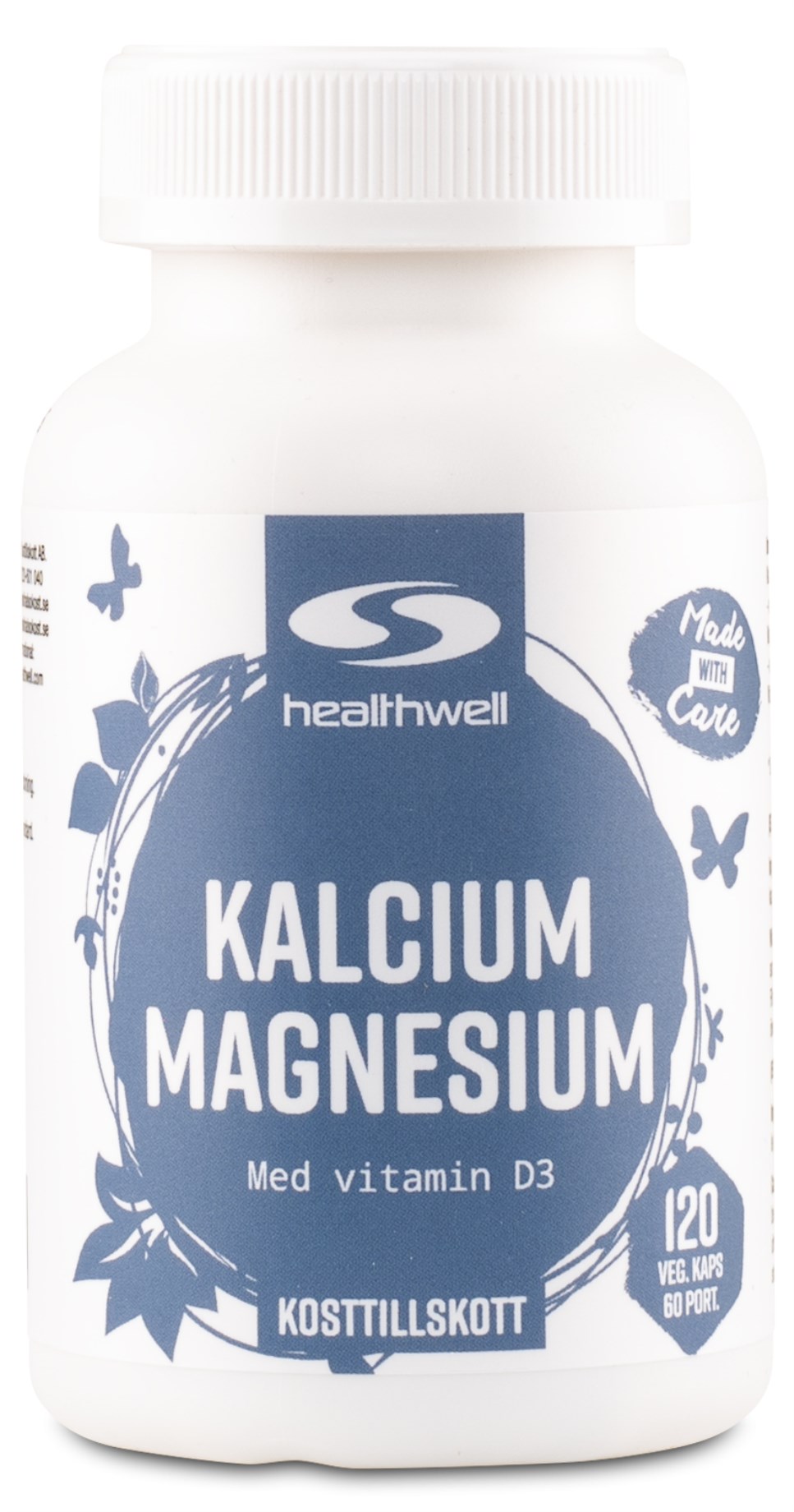 Healthwellin kapselit sisältävät kahta eri muotoa kalsiumia ja magnesiumia, joilla on hyvä imeytyvyys kehossa. Kalsiumin tarve on hieman korkeampi kuin magnesiumin, ja tasapaino mineraalien välillä on tärkeä. Healthwell Kalsium/Magnesium sisältää siksi kolmanneksen enemmän kalsiumia kuin magnesiumia. Imeytymisen optimoimiseksi kapselit sisältävät myös D-vitamiinia, koska sillä on ratkaiseva merkitys sille, kuinka paljon kalsiumia keho voi imeä.