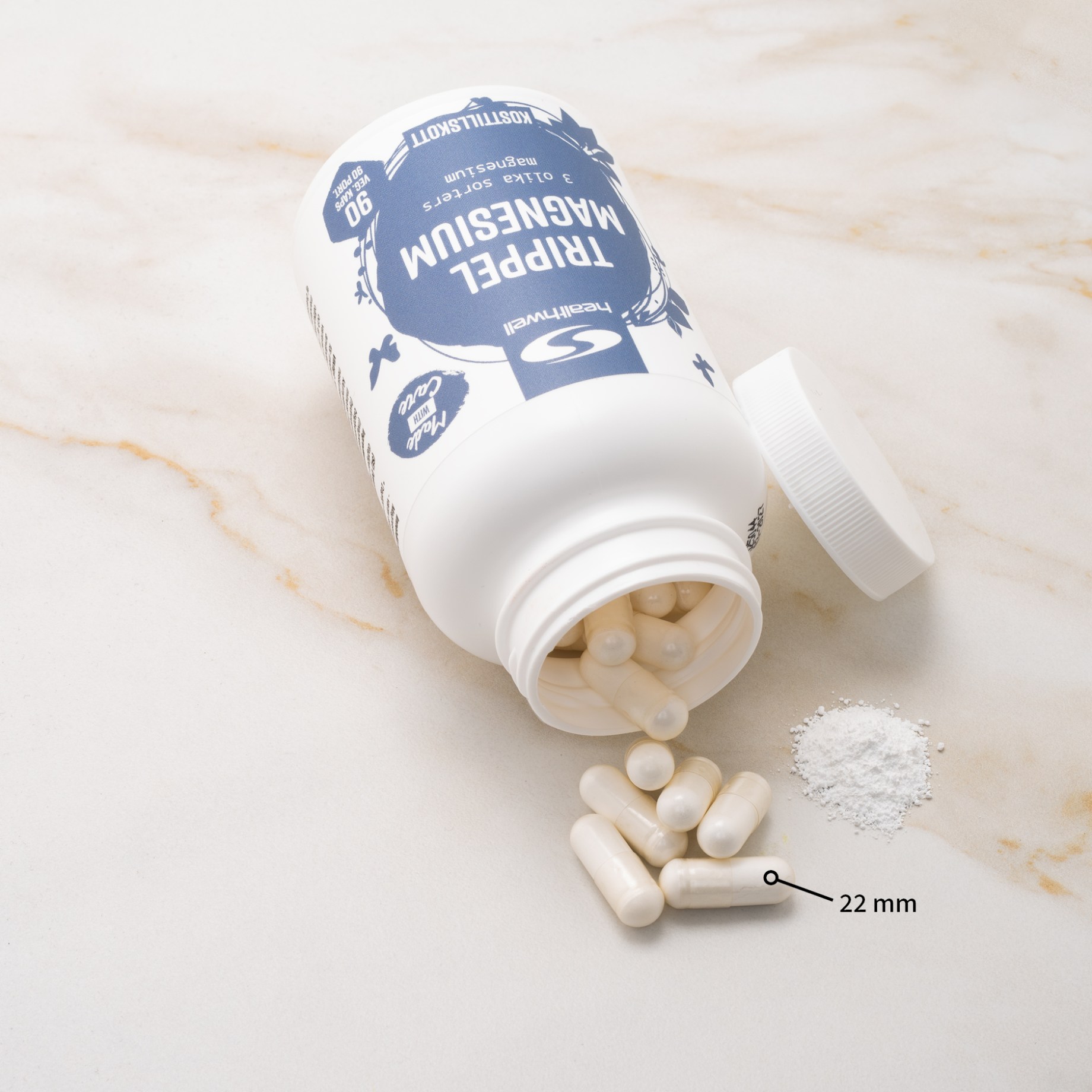 Healthwell Kolmoismagnesium on korkea-annoksinen magnesiumlisä, joka tarjoaa optimaalisen hyötyosuuden niille, jotka priorisoivat tehokkaita ravintolisiä. Jokainen kapseli yhdistää kolme erilaista magnesiumin muotoa: magnesiummalaatti, magnesiumbisglysinaatti ja magnesiumtauraatti. Jokainen kapseli antaa 220 mg elementaarista magnesiumia, joka on määrä, jonka keho tehokkaasti imee ja käyttää. Magnesium on tärkeä mineraali ja sillä on useita ratkaisevia tehtäviä kehossa, mukaan lukien elektrolyyttitasapainon säätely, kalsiumin aineenvaihdunta ja lihasten kyky rentoutua.