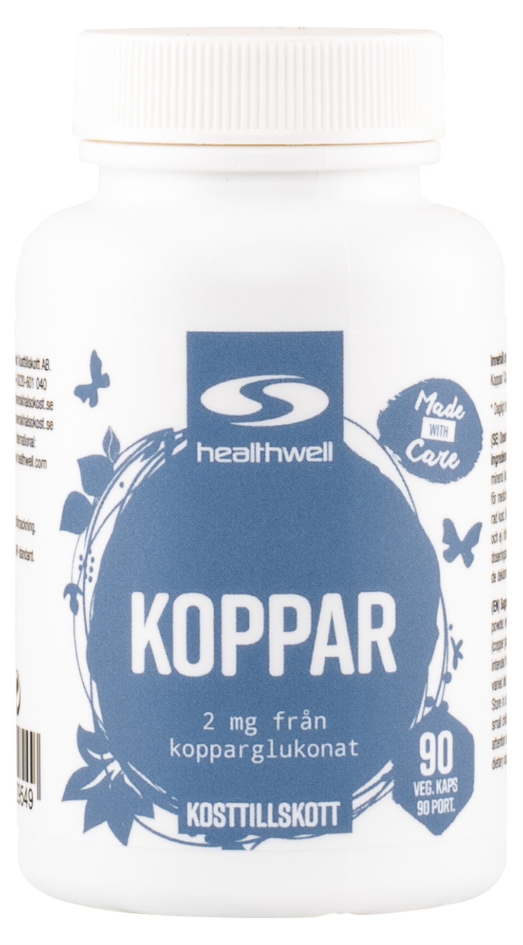 Healthwell Kupari sisältää tärkeää mineraalia kuparia kelaattimuodossa. Jokainen kapseli antaa 2 mg kuparia varmistamaan tämän välttämättömän mineraalin riittävän saannin. Kuparilla on useita tärkeitä tehtäviä kehossa, mukaan lukien hermoston ja immuunijärjestelmän tukeminen sekä raudan kuljetus. Lisäksi kupari vaikuttaa ihon ja hiusten normaaliin pigmentaatioon ja se suojaa kehon soluja oksidatiiviselta stressiltä.