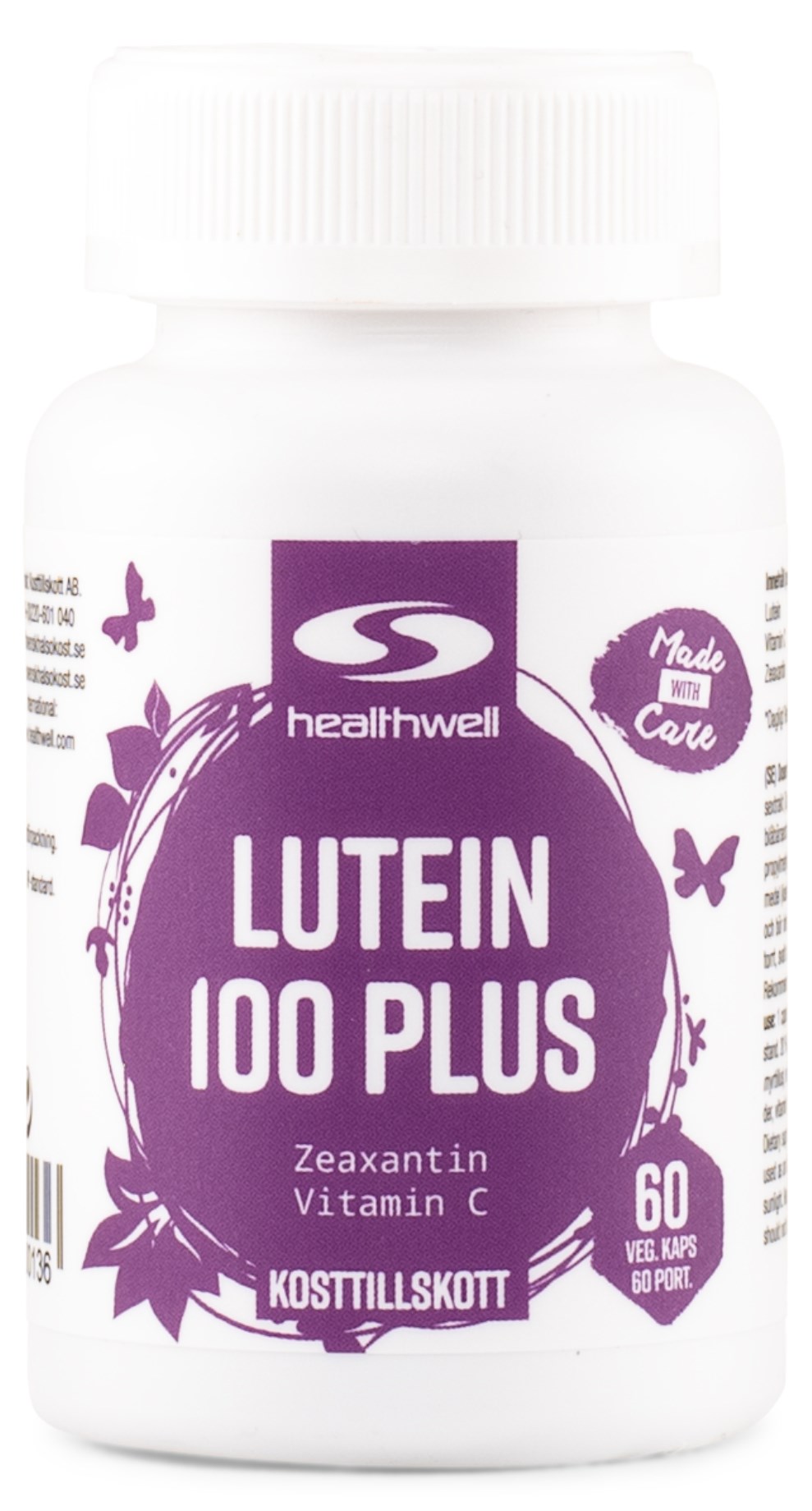 Healthwell Luteiini 100 Plus on huolellisesti suunniteltu ravintolisä, joka luteiinin ja kehäkukasta saatavan zeaksantiinin lisäksi sisältää myös mustikkauutetta ja C-vitamiinia. Mustikat, pohjoismainen supermarja, ovat ravinteiden, kivennäisaineiden ja vitamiinien aarreaitta. Kehäkukan tavoin mustikat sisältävät sekä luteiinia että flavonoideja. Flavonoidi antosyaanin uskotaan suojaavan A-vitamiinia silmän hajoamiselta. C-vitamiini on voimakas antioksidantti, joka suojaa kehon soluja vapailta radikaaleilta ja ehkäisee siten oksidatiivista stressiä.