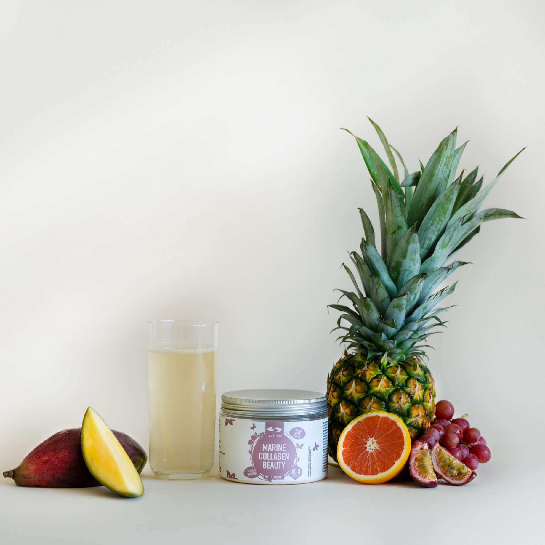 Marine Collagen Beauty on hyvänmakuinen kollageeni, joka sisältää antioksidantteja ihoon, hiuksiin ja kynsiin.