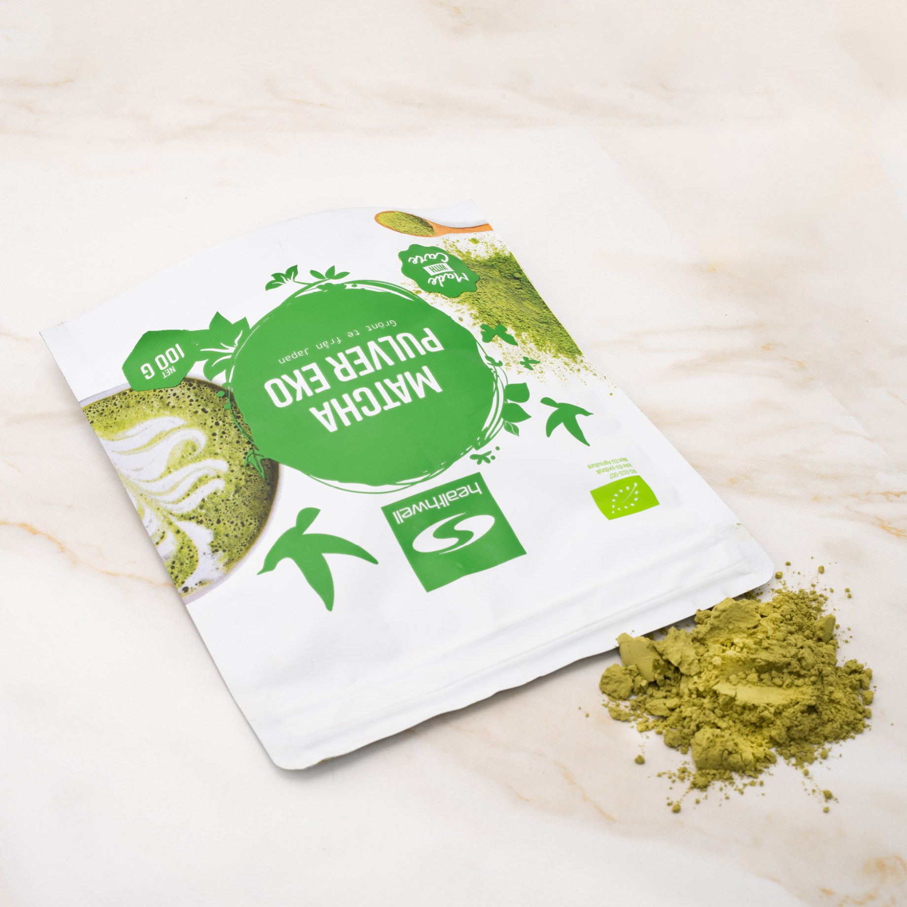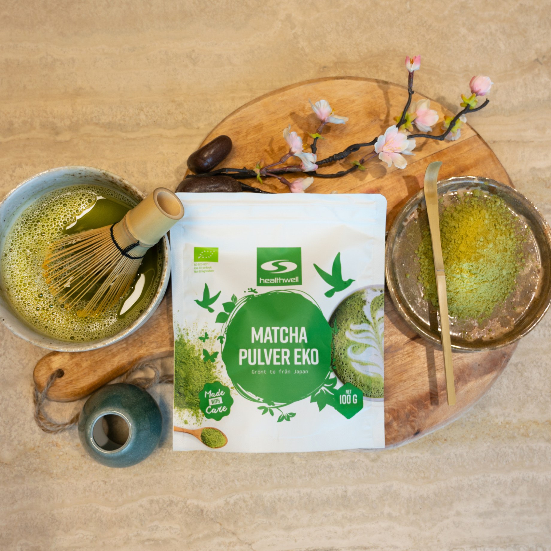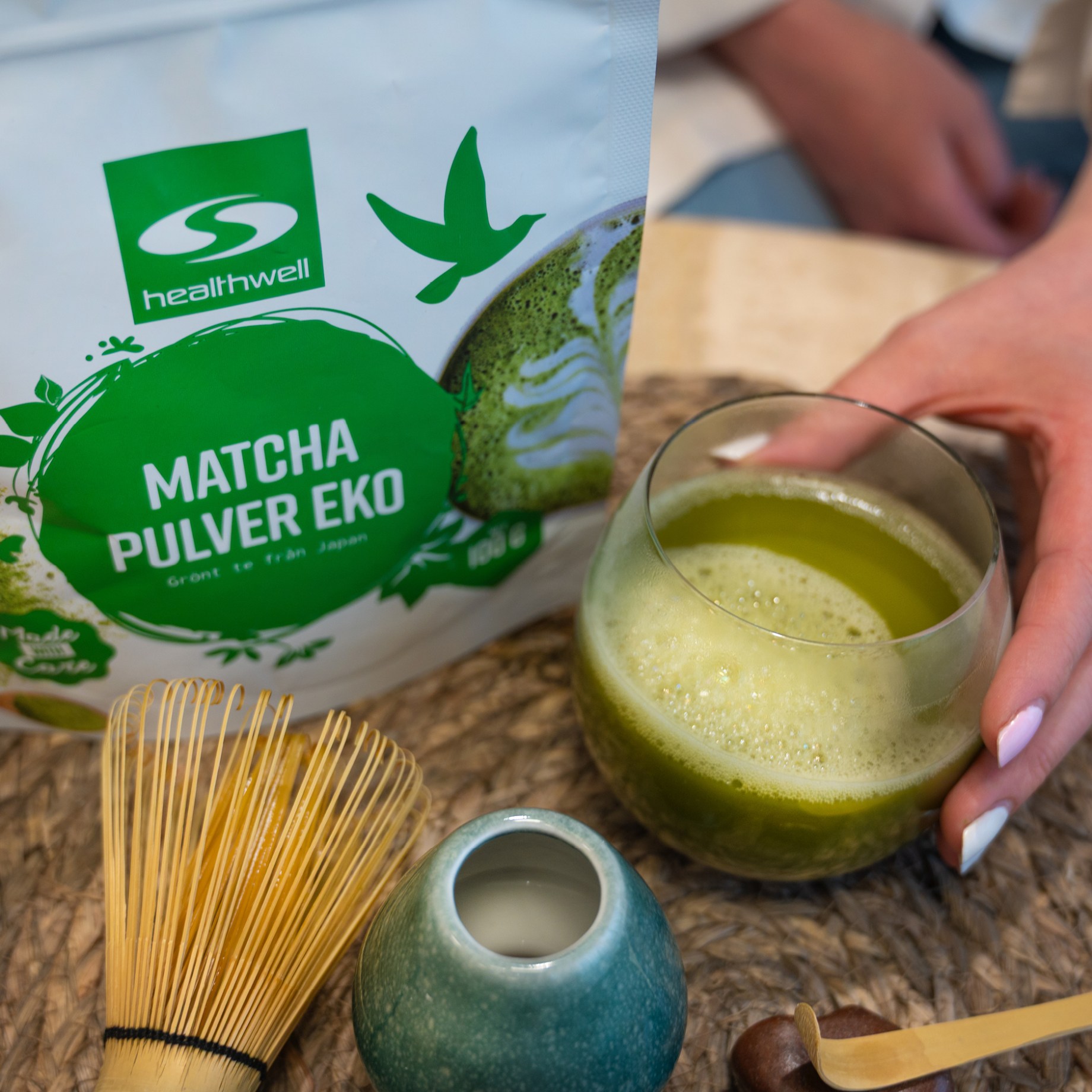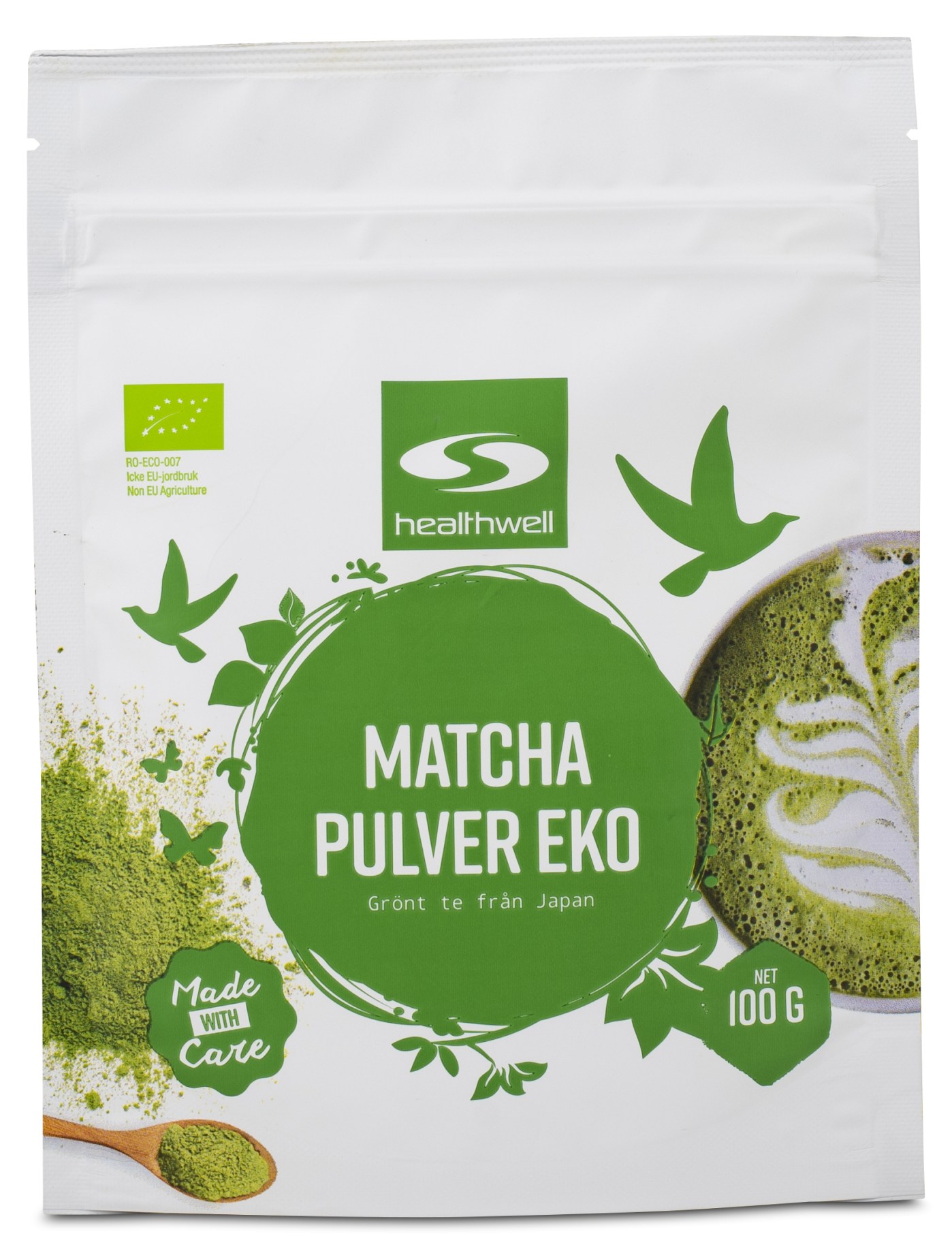 Aloita päiväsi matchalla saadaksesi luonnollista energiapotkua! Healthwell Matchajauhe Luomu on 100 % puhdasta luomumatchajauhetta Japanista. Matcha on arvostettu vihreä tee, joka tunnetaan energisoivista ominaisuuksistaan. Koska teelehdet jauhetaan hienoksi jauheeksi eikä niitä suodateta pois, saat runsaasti vitamiineja, kivennäisaineita, vihreiden lehtien klorofylliä, antioksidantteja, kofeiinia ja teaniinia.
