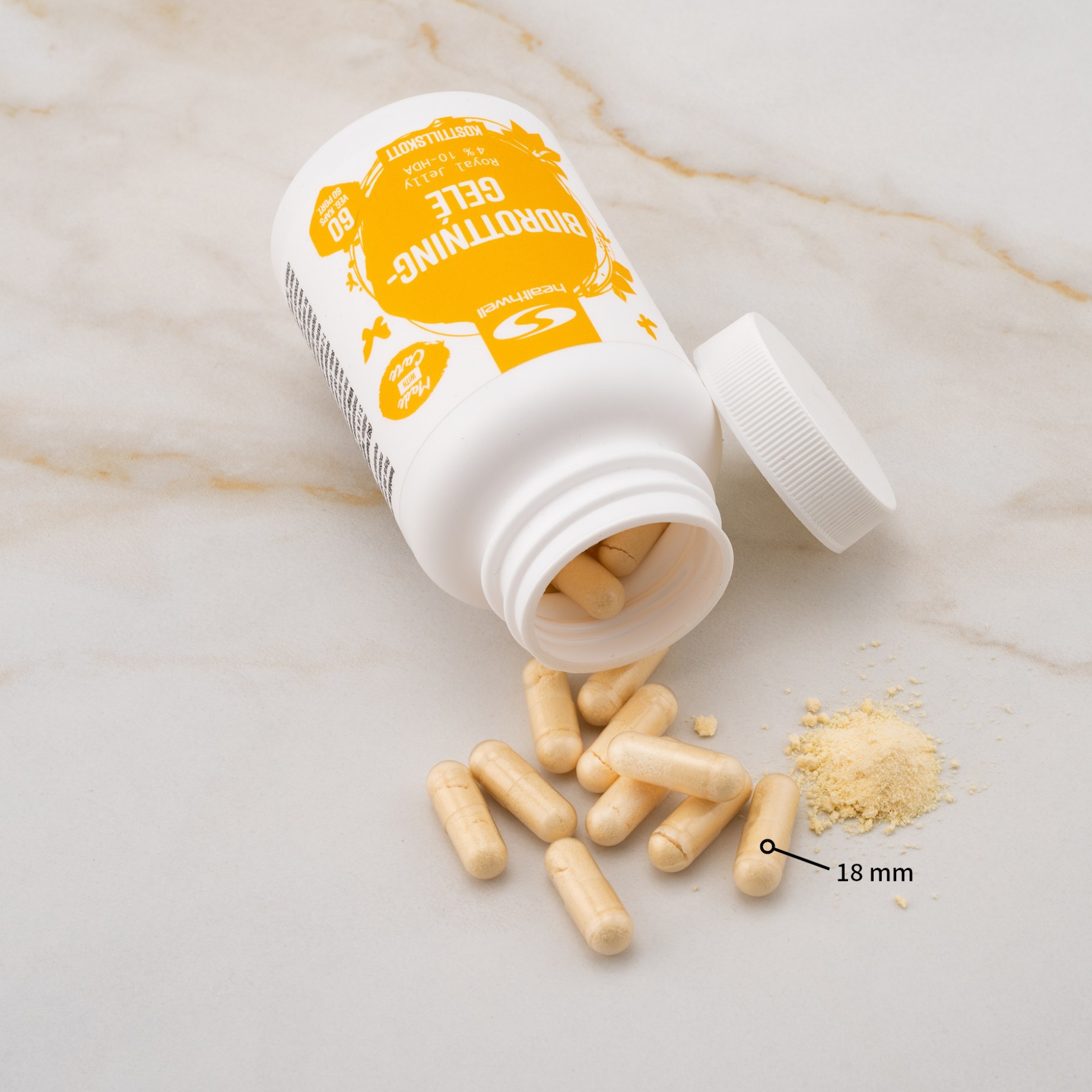 Healthwell Mehiläiskuningatargeeli (Royal Jelly) sisältää mehiläiskuningatargeeli-uutetta, joka sisältää peräti 4 % aktiivista ainetta 10-DHA:ta. Mehiläiskuningatargeeli on luonnostaan rikas kollageenin, mineraalien ja useiden B-vitamiinien lähde. Kiinnostava aine, joka liitetään usein ihonhoitoon ja hormonitasapainoon!