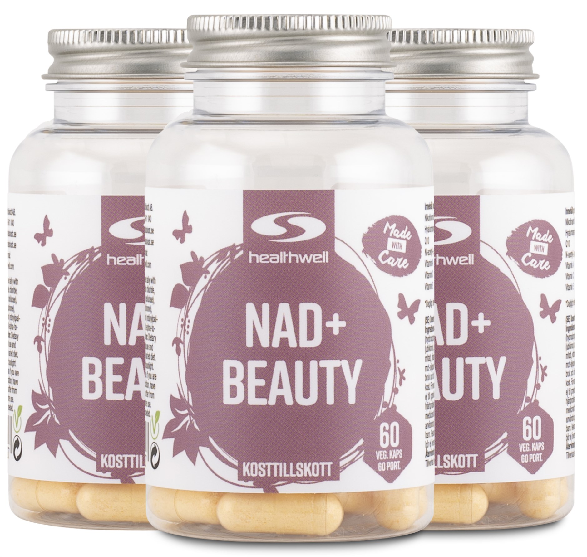 Healthwellin NAD+ Q10 Beauty -ravintolisä sisältää voimakkaan yhdistelmän monia hyödyllisiä ainesosia. Nämä ainesosat toimivat yhdessä ihon luonnollisen kiinteyden ja hehkun ylläpitämiseksi. Yksi näistä ainesosista on Q10, joka toimii kehossa antioksidanttina ja suojaa sekä ihoa että soluja. Q10 auttaa ylläpitämään normaaleja E-vitamiinitasoja, vähentää UV-säteilyn aiheuttamia vaurioita ja edistää normaaleja kollageeni- ja elastiinitasoja ihossa (3).