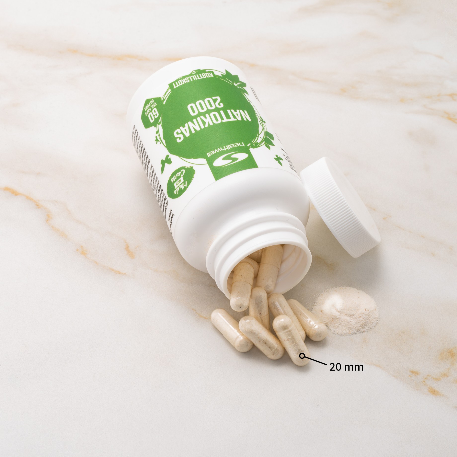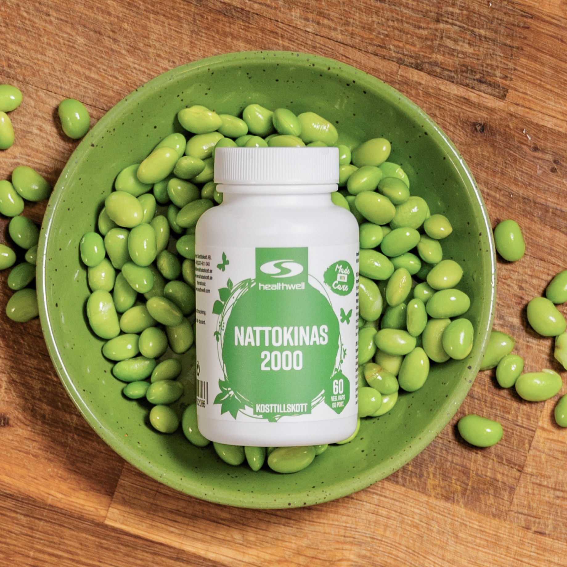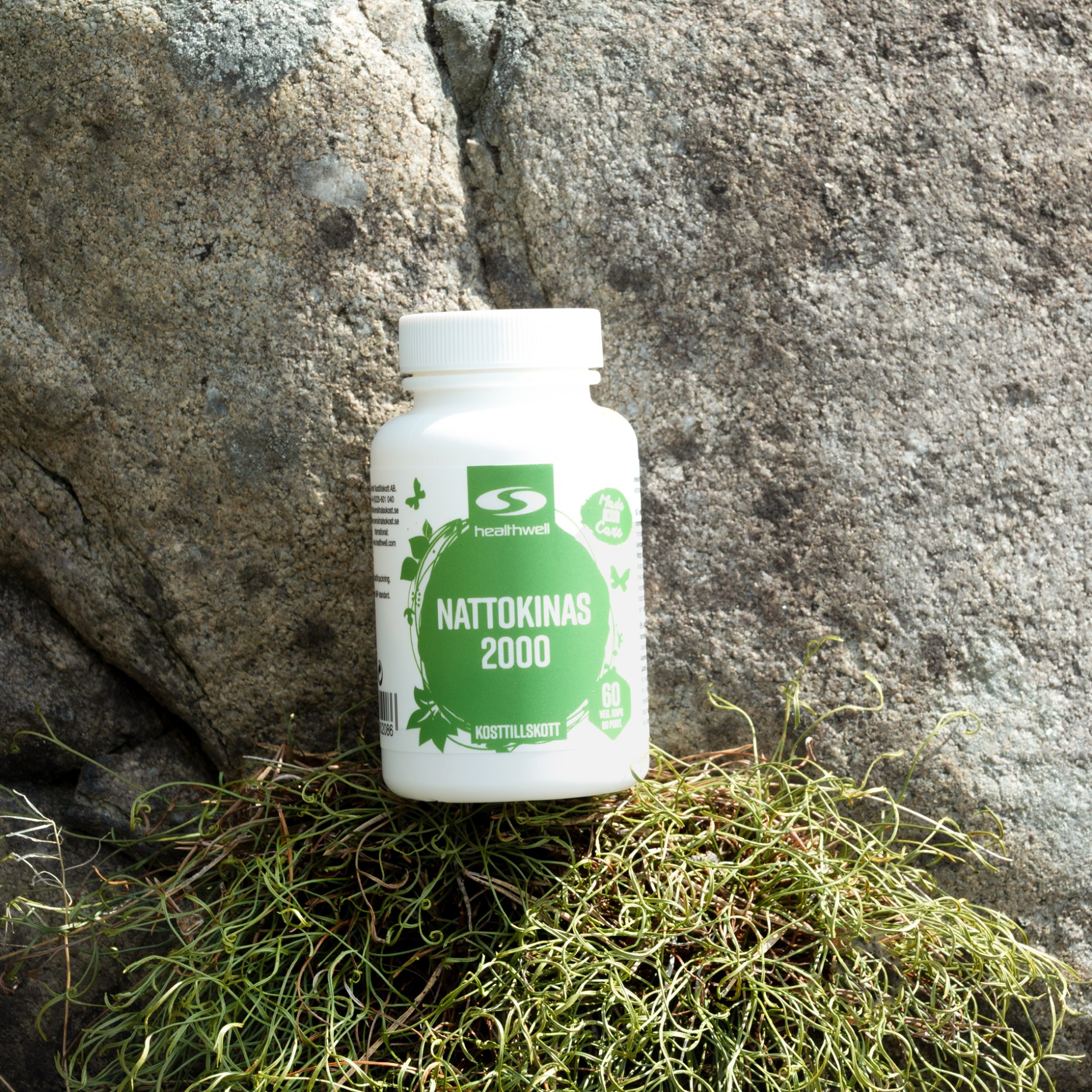 Healthwellin Nattokinaasi 2000 on lisäravinne proteolyyttiselle nattokinaasientsyymille, joka tuotetaan soijapavuista, aivan kuten japanilainen ruokalaji natto. Nattokinaasia on tutkittu sen entsymaattisten kykyjen osalta kehossa, missä on havaittu, että entsyymi voi pilkkoa tarpeettomia proteiineja.