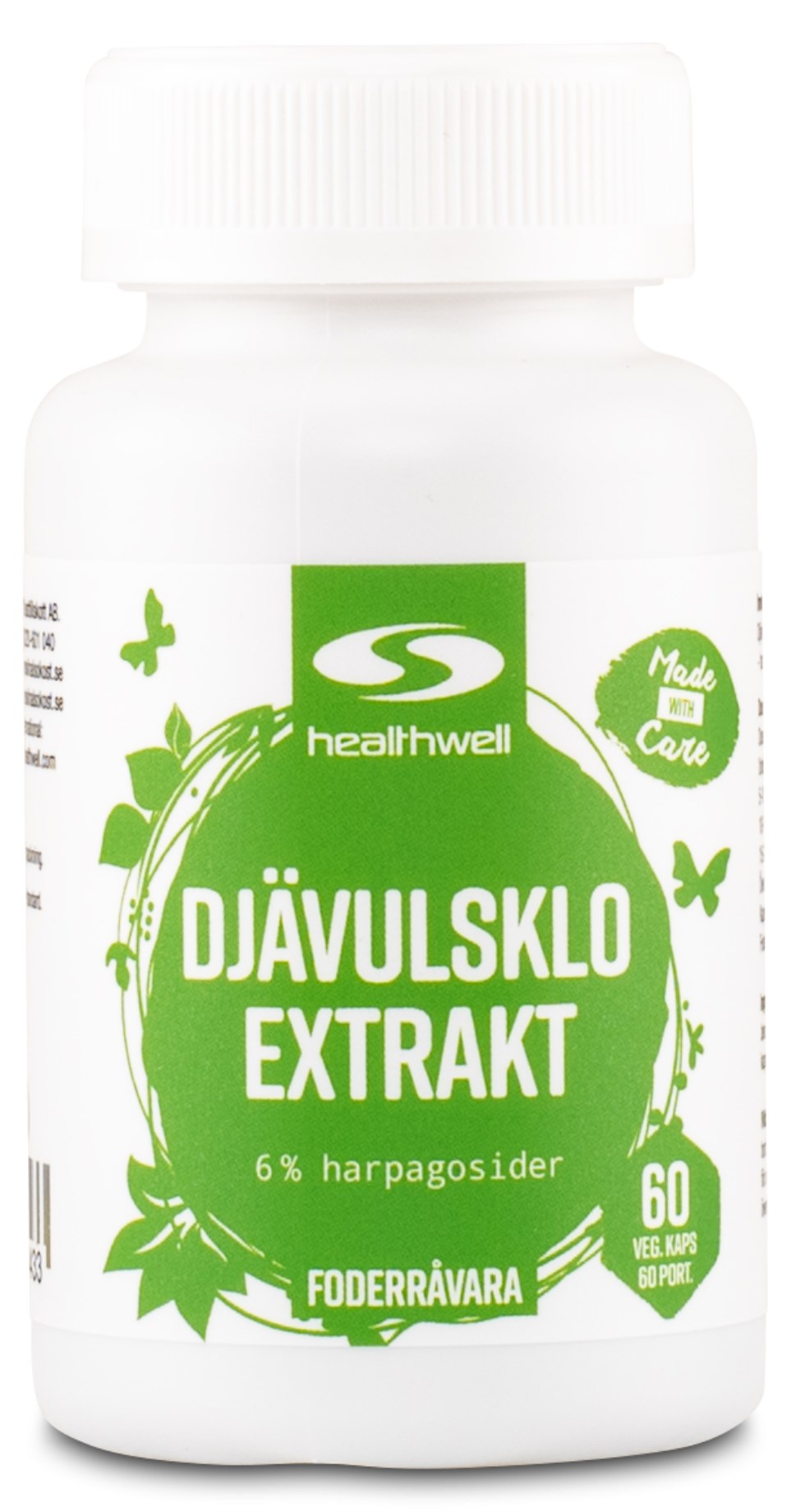 Healthwell Paholaisenkynsiuute sisältää suuren annoksen Harpago-yrttiä, joka tunnetaan myös nimellä Paholaisenkynsi, jolla on pitkä perinne luontaistuotteena. Jokainen kapseli sisältää 500 mg standardoituja 6% harpagosideja, joka on vaikuttava aine. Kapselin voi niellä kokonaisena tai avata ja sekoittaa ruokaan.
