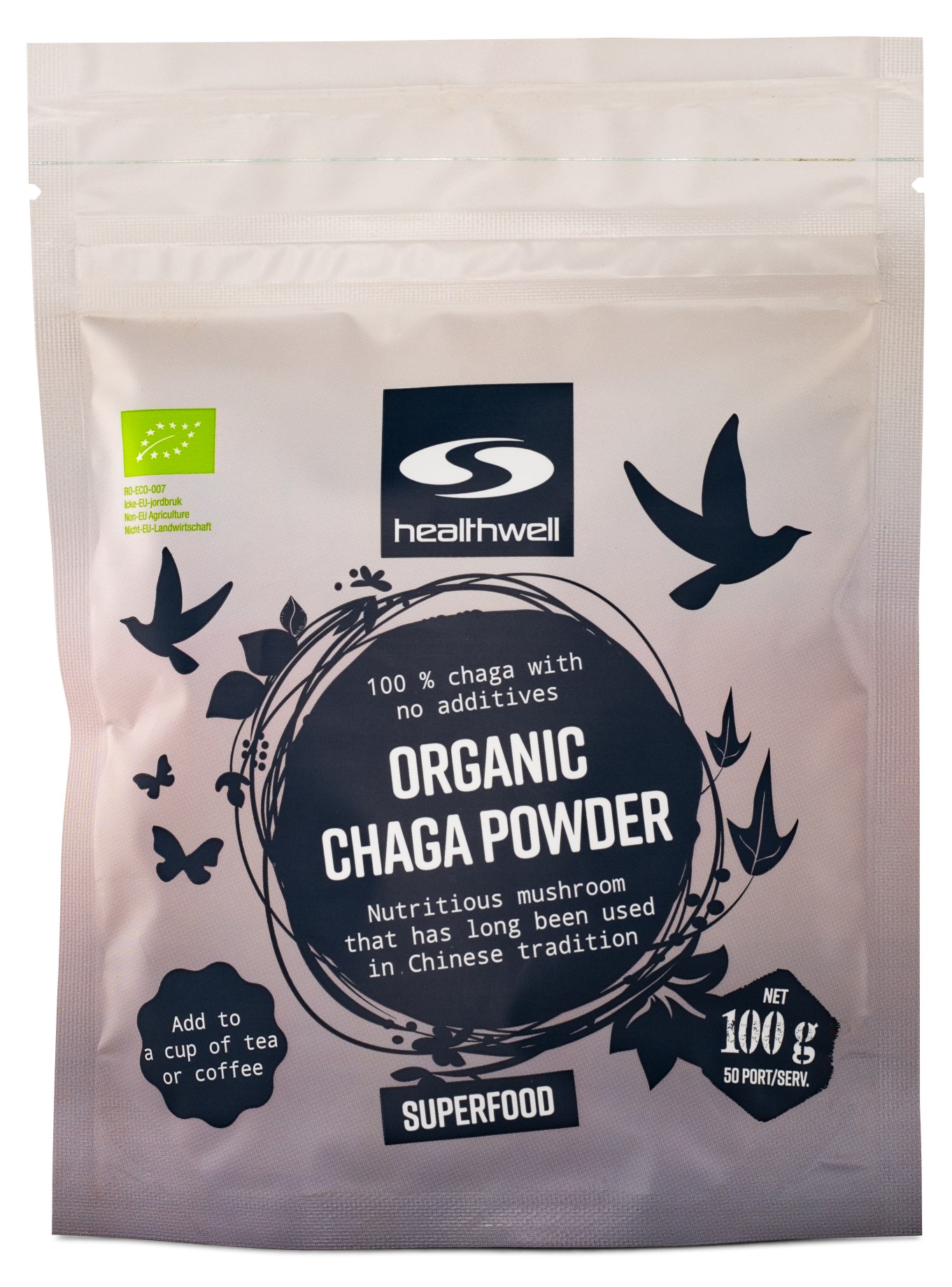 Healthwell Chaga EKO on jauhe, joka on valmistettu pakurikäävästä (Inonotus obliquus). Pakurikääpä tunnetaan korkeasta ORAC-arvostaan, mikä tarkoittaa, että se on runsas antioksidanttien lähde, ja se sisältää myös runsaasti mineraaleja ja vitamiineja. Chaga-jauhe sekoittuu helposti lämpimään juomaan teeksi.