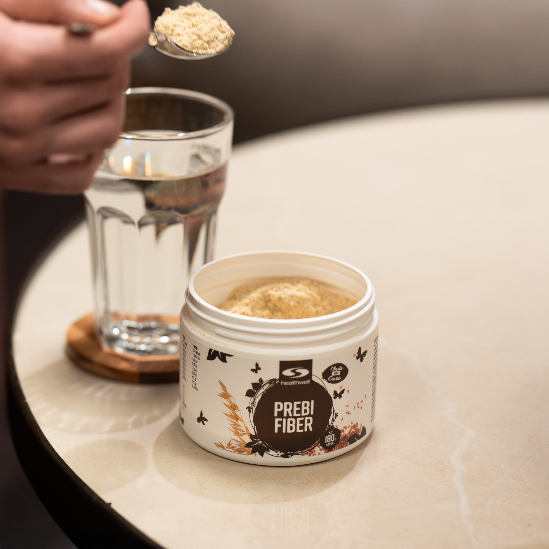Healthwellin PrebiFiber on kuitulisä jauheena, joka sisältää useita erilaisia kuitutyyppejä, jotka toimivat prebioottisina kuituina suolistobakteereille. PrebiFiberin kuidut ovat geeliä muodostavia ja tarjoavat hyvän kylläisyyden, mikä on ihanteellista niille, jotka haluavat lisätä kuitujen saantia ja pitää verensokerin vakaana. PrebiFiber sisältää pääasiassa psylliuminsiemenkuoria, yhdessä kaurakuitujen ja glukomannaanin kanssa.