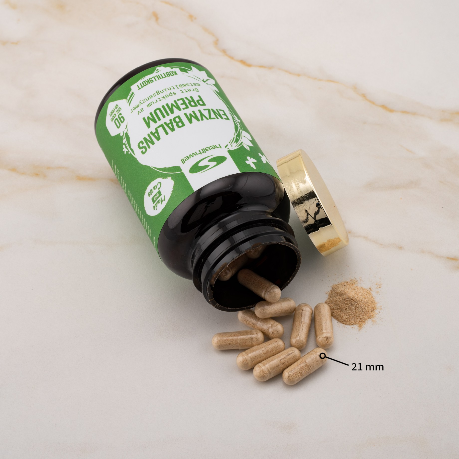 Healthwell Enzym Balans Premium on lisäravinne sinulle, joka haluat helpottaa ruoansulatusta ja maksimoida ravinteiden imeytymisen. Tämä edistynyt entsyymisekoitus on kehitetty niille, jotka haluavat optimoida ruoansulatuksen suurten aterioiden jälkeen tai varmistaa optimaalisen ravinnonsaannin. Entsyymit ovat tehokkaita ravintoaineiden, kuten hiilihydraattien, rasvojen ja proteiinin hajottamisessa kehossa. Healthwell Enzym Balans Premium on korkeadosainen ja se otetaan aterioiden yhteydessä. Se sisältää myös 50 mg yrttiuutetta per kapseli, kuten voikukkaa, rohtosalkoruusua ja rosmariinia.
