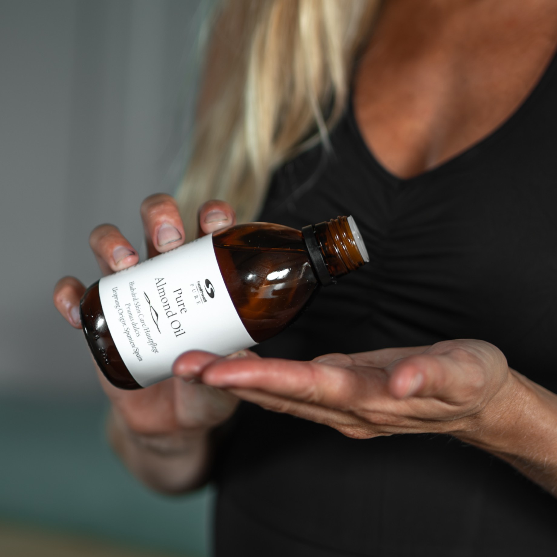 Hoida kuivaa ihoa, hauraita hiuksia tai halkeilevia käsiä PURE Manteliöljy EKO:lla. Tämä ravitseva öljy on pitkään ollut suosikki ihon- ja hiustenhoidossa korkean tyydyttymättömien rasvahappojen ja vitamiinien pitoisuutensa ansiosta. PURE:n manteliöljy on 100 % ekologista ja varovasti kylmäpuristettua korkealaatuisista Espanjassa viljellyistä makeamantelista. Hellävarainen kylmäpuristus säilyttää kaikki öljyn hyödylliset ominaisuudet, tehden siitä sekä tehokkaan että korkealaatuisen. Öljy on erinomainen kosteuttamaan kuivia ihoalueita ja sitä voidaan käyttää myös hierontaöljynä joko yksinään tai yhdistettynä eteerisiin öljyihin kuten laventeli ja piparminttu.
