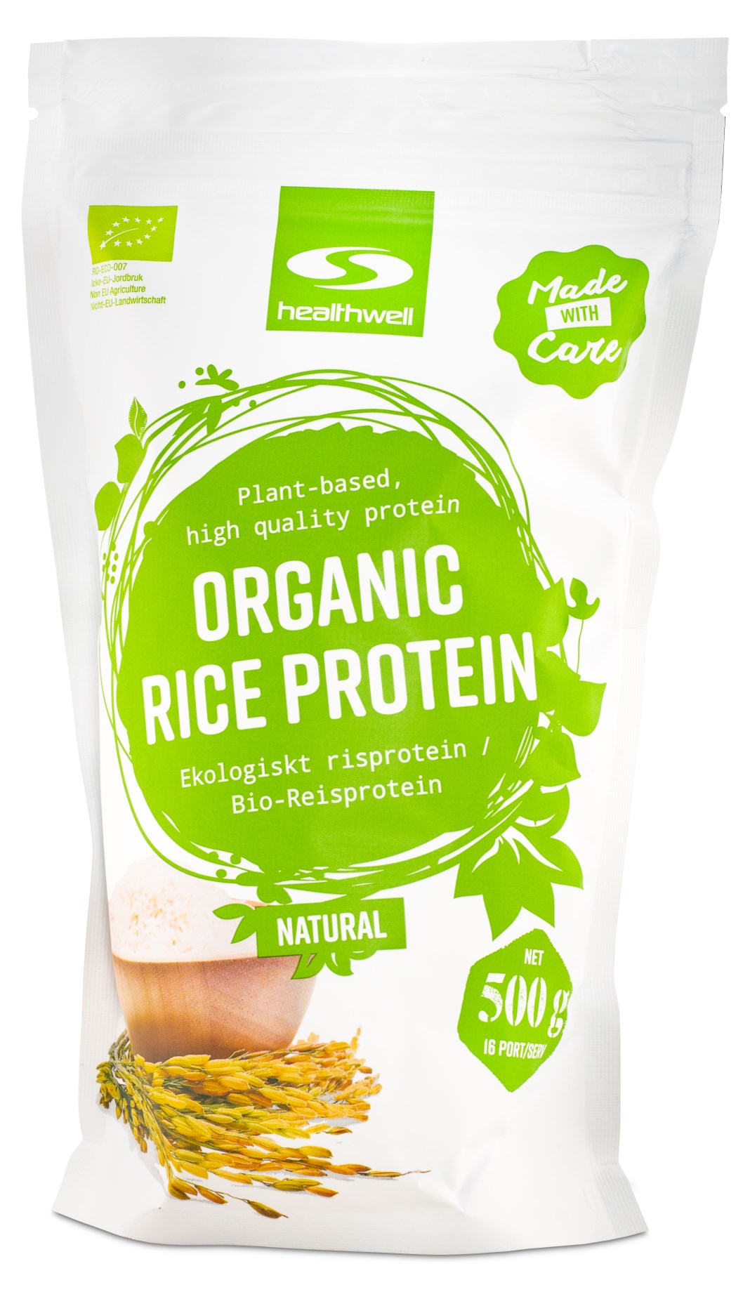 Healthwell Riisiproteiini Luomu on lisäaineeton, ekologinen riisiproteiini. Tämä riisiproteiini sisältää peräti 80% proteiinia ja sillä on laaja aminohappoprofiili, mikä varmistaa, että keho pystyy hyödyntämään sen tehokkaasti. Healthwell Riisiproteiini Luomu sopii täydellisesti täydentämään aterioitasi tai välipalaksi. Se on myös erinomainen valinta vegaanille tai vegetaristeille varmistaaksesi riittävän proteiinin saannin. Luonnollinen maku mahdollistaa sen sekoittamisen helposti herkulliseen smoothieen tai muuhun juomaan!
