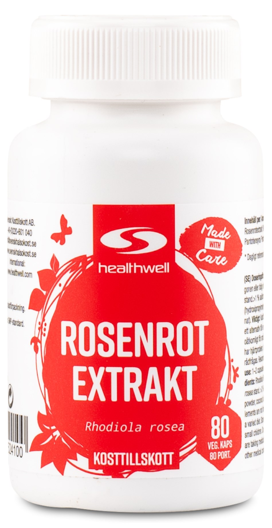 Healthwellin Ruusunjuuriuute on vahvasti annosteltu lisäravinne adaptogeenisestä ruusunjuurikasvista. Tuote sisältää uutetta, joka on standardoitu sisältämään 3% rosaviinejä ja 1% salidrosideja - kaksi ainetta, joita pidetään ruusunjuuren vaikuttavina aineina. Lisäksi se on vahvistettu B5-vitamiinilla pantoteenihapolla, joka edistää henkistä suorituskykyä. Parhaan vaikutuksen saamiseksi sitä suositellaan ottamaan 1-2 kapselia aamulla tai aikaisin iltapäivällä päivittäin stressin ja väsymyksen aikana.