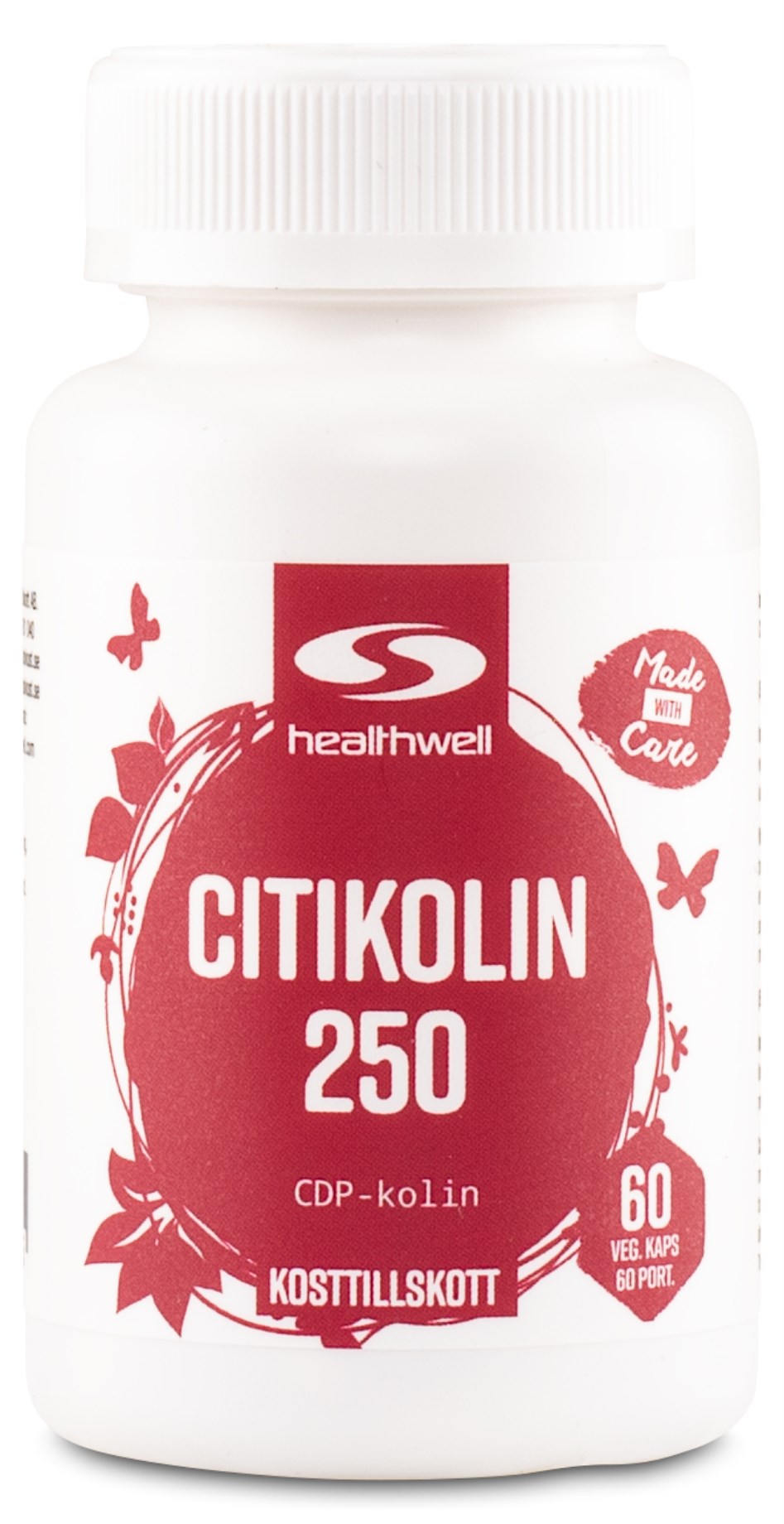 Healthwell Sitikoliini 250 sisältää kapseleita, joissa on sitikoliini-nimistä ainetta. Sitikoliini, joka tunnetaan myös nimellä CDP-koliini, koostuu koliinin ja sytidiinin yhdistelmästä. Koliini edistää normaalia maksan toimintaa ja normaalia homokysteiinin aineenvaihduntaa. Jokainen Healthwellin Citikolin 250 -kapseli sisältää peräti 250 mg CDP-koliinia.