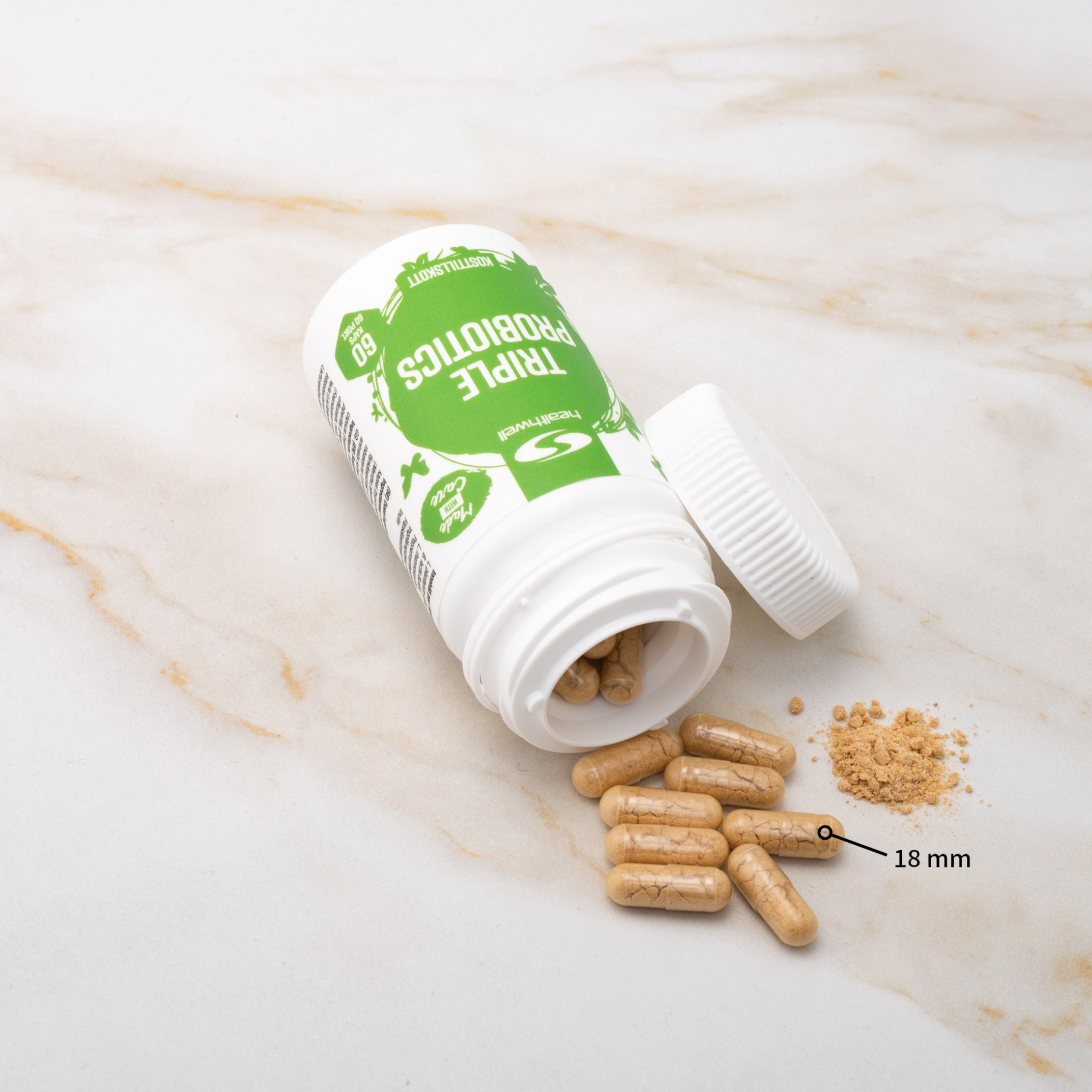 Healthwell Triple Probiotics -kapselit on suunniteltu kestämään vatsahappoa, jotta bakteerit pääsevät suolistoon, missä niistä on eniten hyötyä. Tämä parantaa bakteerien selviytymistä ja tehokkuutta suolistofloorassa.