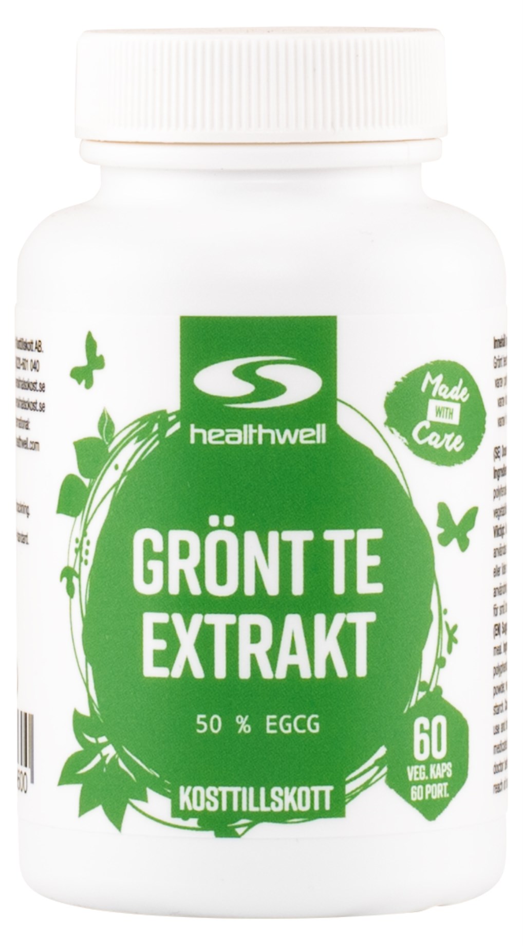 Tutustu vihreän teen etuihin Healthwell Vihreän Teen Uutteen avulla! Uute, joka on kasviperäisissä kapseleissa, on peräisin huolellisesti valituista teepensaista (Camellia sinensis) ja on standardoitu sisältämään peräti 95 % polyfenoleja, joista 50 % on EGCG:tä, vihreän teen aktiivisin komponentti. Teetä kuivatetaan hellävaraisesti, jotta sen ravintoaineet säilyvät mahdollisimman hyvin. Koska tuote sisältää väkevöityä vihreän teen uutetta, sinun ei tarvitse kuluttaa suuria määriä hyötyäksesi sen terveysvaikutuksista. Itse asiassa yksi kilo Healthwellin vihreän teen uutetta vastaa 15 kiloa tavallista vihreää teetä.