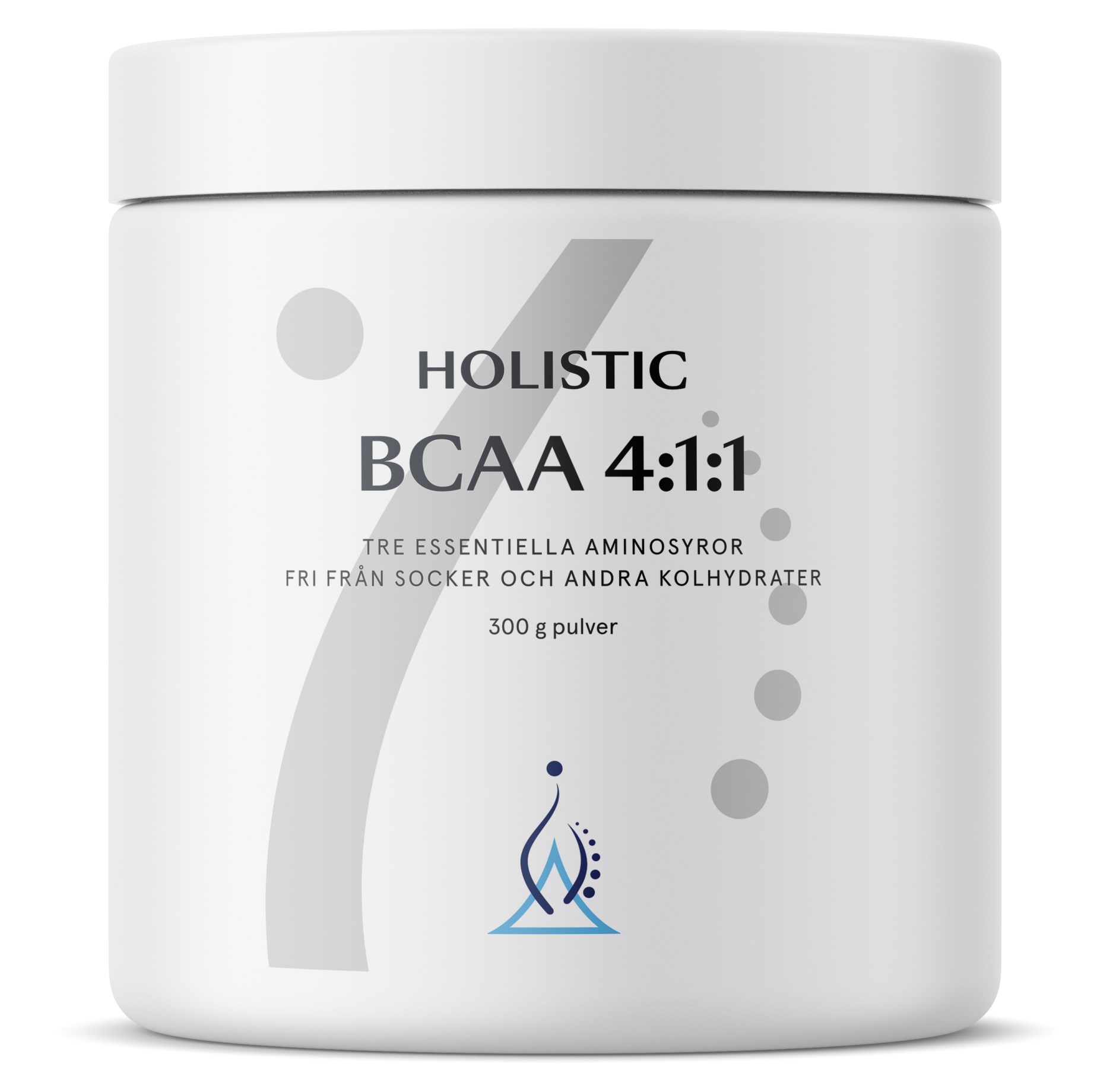 Holistic BCAA on jauhe, joka koostuu kolmesta aminohaposta; leusiinista, isoleusiinista ja valiinista vapaassa muodossaan. Vapaa muoto tarkoittaa, että ne on hajotettu pienimpiin mahdollisiin osiin, mikä tekee niiden imeytymisestä kehoon helppoa ja mahdollistaa niiden välittömän käytön lihasten rakennuspalikoina. Proteiinipitoista ruokaa nautittaessa keho imee myös proteiinia, mutta se vie huomattavasti kauemmin, koska ravintoaineet on ensin pilkottava, ennen kuin keho voi hyödyntää niitä. BCAA on suosittu lisä otettavaksi juuri ennen, treenin aikana tai sen jälkeen, koska ne siirtyvät kehoon niin nopeasti ja edistävät lihasten rakentamista. Holistic BCAA ei sisällä makuaromeja eikä myöskään hiilihydraatteja, joten myös laihduttajat voivat käyttää tätä ravintolisää.