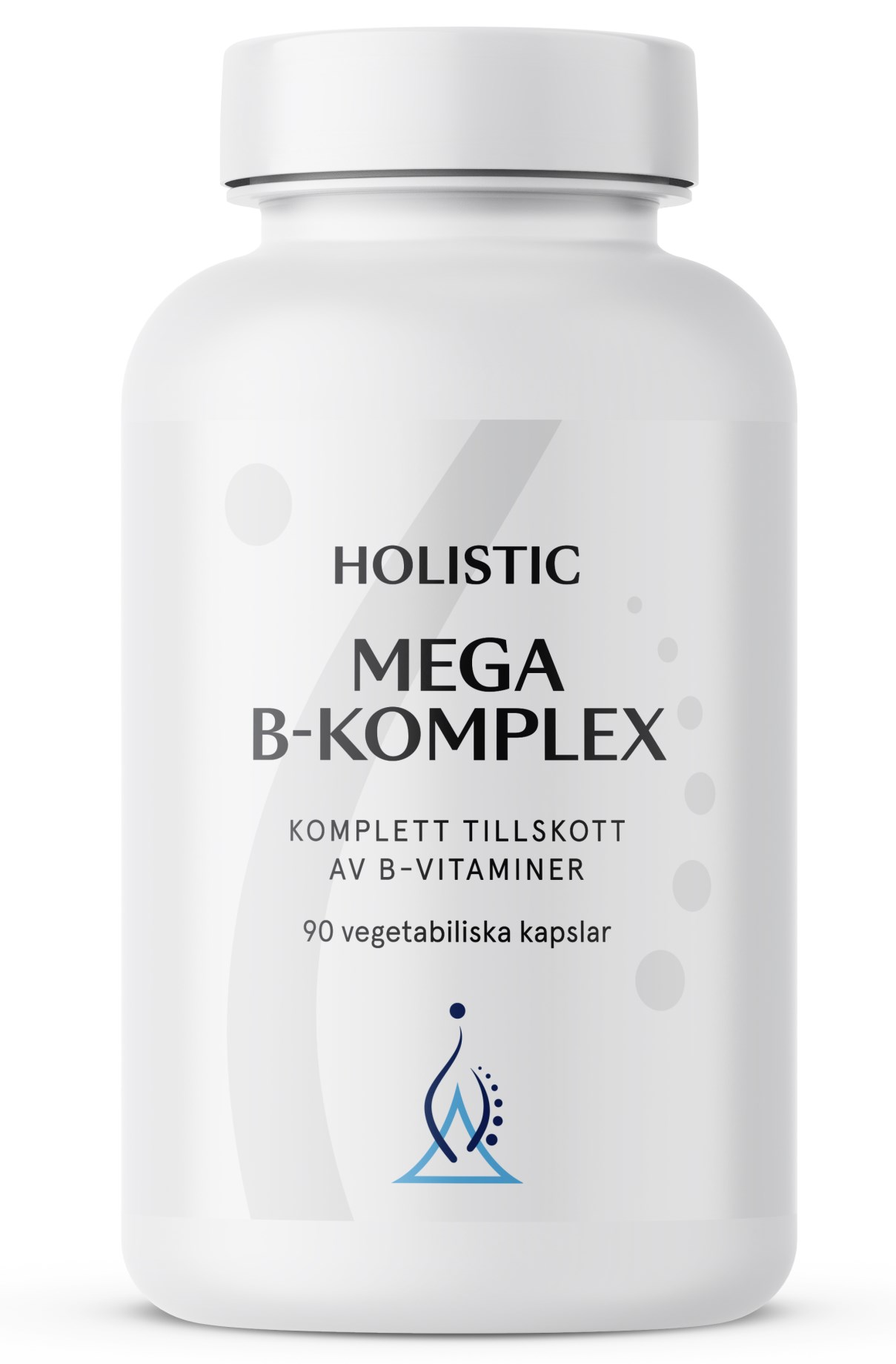 B-vitamiinit osallistuvat moniin solujen toimintoihin, ja koska elimistö ei voi varastoida niitä, niitä on saatava usein ravinnon kautta. Holistics Mega B-kompleksi sisältää koostumuksen B-vitamiineja ja muita aineita, minkä ansiosta saat yhdestä kapselista useita eri B-vitamiineja.