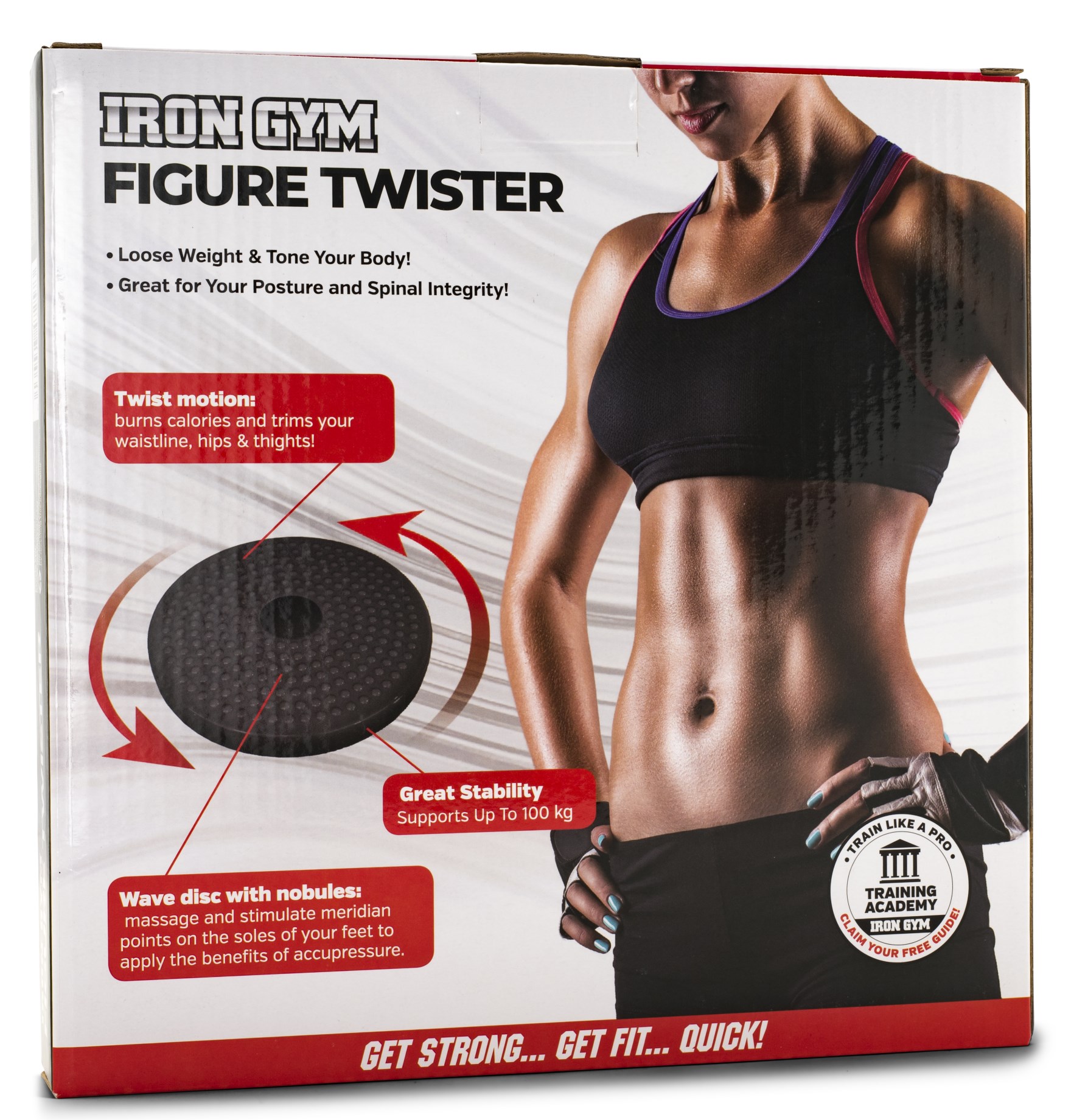 Iron Gym Figure Twister on kätevä pyörivä levy tehokkaaseen harjoitteluun, sekä kuntosalille että kotitreeniin. Voit itse valita, haluatko keskittyä jalkojen vahvistamiseen vai vyötärön kiinteyttämiseen hauskalla ja helpolla tavalla. Pyörivien liikkeiden avulla harjoitat myös tasapainoasi ja lisäät lonkkien liikkuvuutta. Iron Gym Figure Twisterin yläosa on varustettu ergonomisilla ja pyöristetyillä nystyröillä, jotka hierovat ja stimuloivat jalkapohjia harjoituksen aikana ja kestävät enintään 100 kg:n painon.