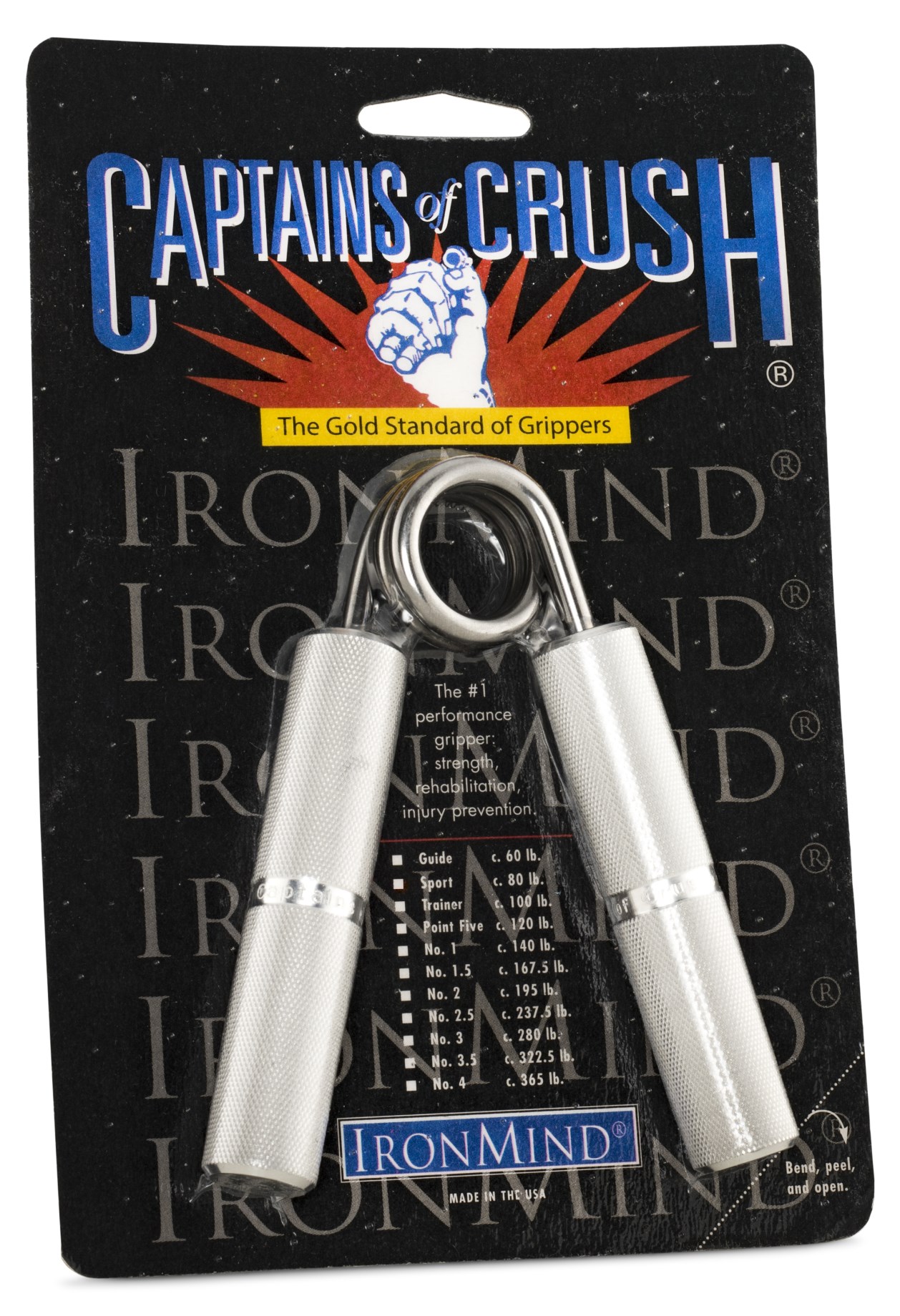 IronMind Captains of Crush on treeniväline, jolla voit kehittää otteesi voimaa, mutta myös testata sitä. Tarjolla on useita otteen voimakkuuksia, aloittelijatasosta äärimmäisiin vastuksiin asti, jotka vain harvat maailmassa ovat voittaneet, joukossa myös voimalegenda Magnus Samuelsson. Captains of Crush on kansainvälisesti tunnustettu voiman mittari.