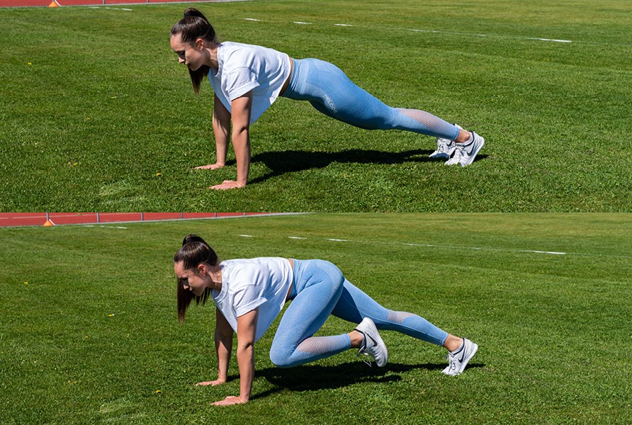 Punnerrukset 10 kpl tiukkoja, varpailla tai polvilla