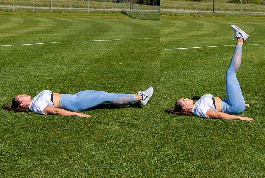 Selinmakuulla tehtävät jalkojen nostot 10 kpl suorilla tai taipuneilla polvilla