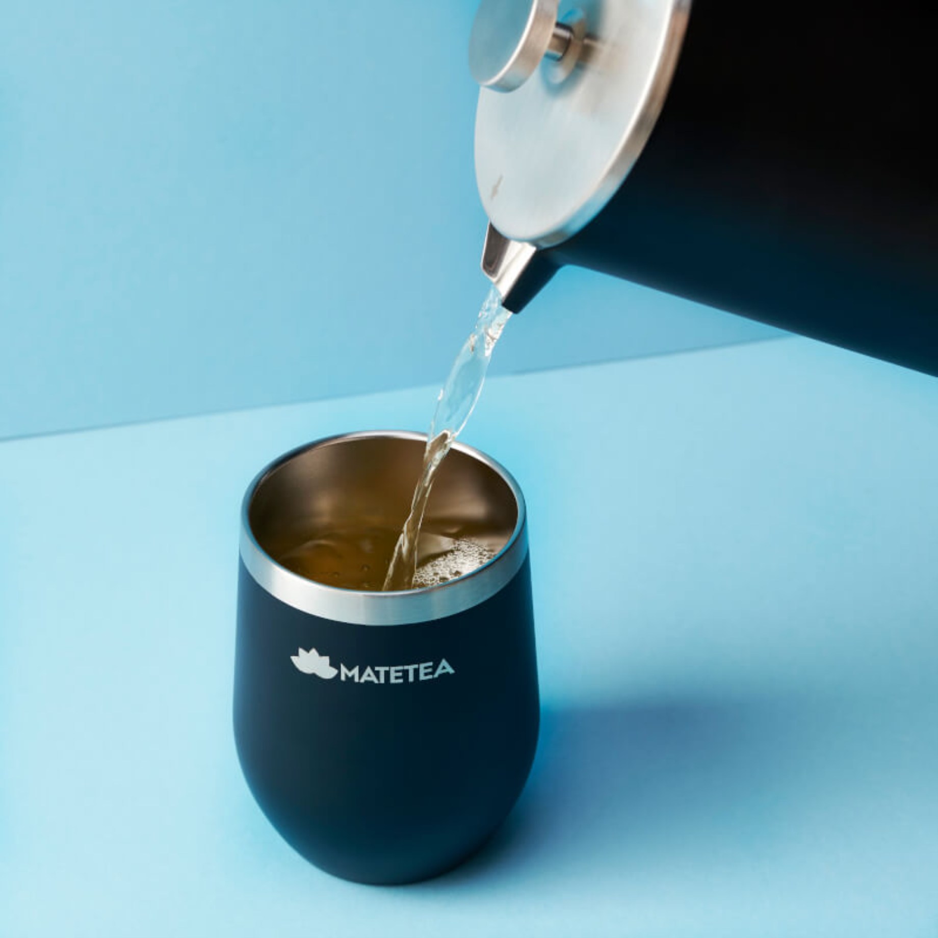 Matetea Kalebass on tyylikäs matekuppi, joka on valmistettu ruostumattomasta teräksestä ja jossa on kaksinkertaiset seinät. Se toimii erinomaisesti sekä kuumille että kylmille juomille ja pitää lämpötilan jopa kahden tunnin ajan. Pyöreät muodot ja mattamusta viimeistely luovat tyylikkään designin. Kuppi toimitetaan ilman bombillaa ja on saatavilla sekä 1- että 2-pakkauksena. Matetea Kalebass on helppo puhdistaa vedellä ja saippualla, mikä tekee siitä ihanteellisen päivittäiseen käyttöön. Huomioithan, ettei sitä tule pestä astianpesukoneessa.