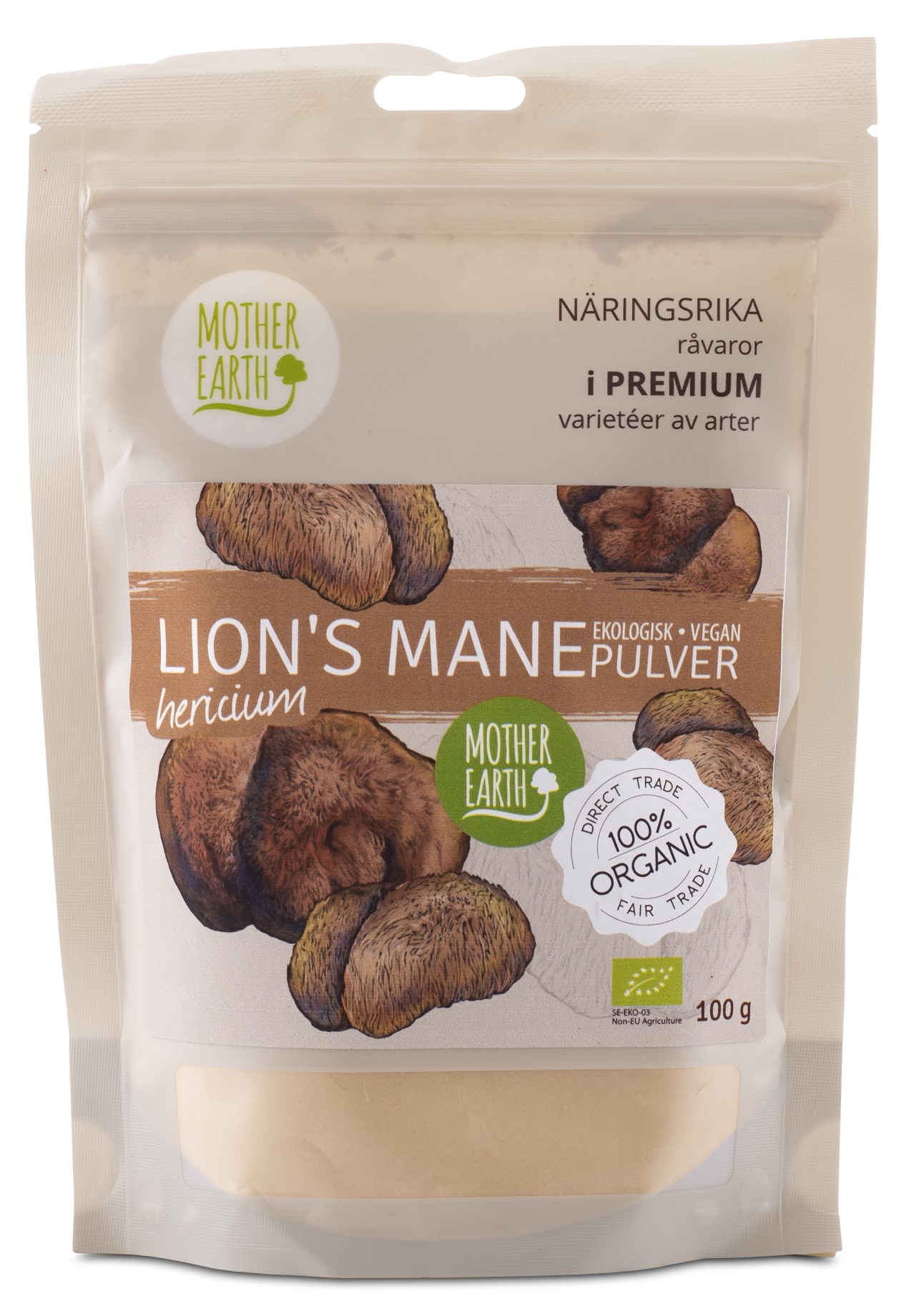 Mother Earth Lion's Mane Jauhe Eko on valmistettu lion's mane -sienestä – Suomessa harvinaisesta ja rauhoitetusta sienestä. Tämä sieni kasvaa pääasiassa vanhoissa tai kuolleissa lehtipuissa Aasiassa ja se on ravinteikas, sisältäen antioksidantteja, polysakkarideja ja beetaglukaania. Lion's mane on pitkään ollut käytössä kiinalaisessa lääketieteessä, ja sille on omistettu useita mielenkiintoisia ominaisuuksia.