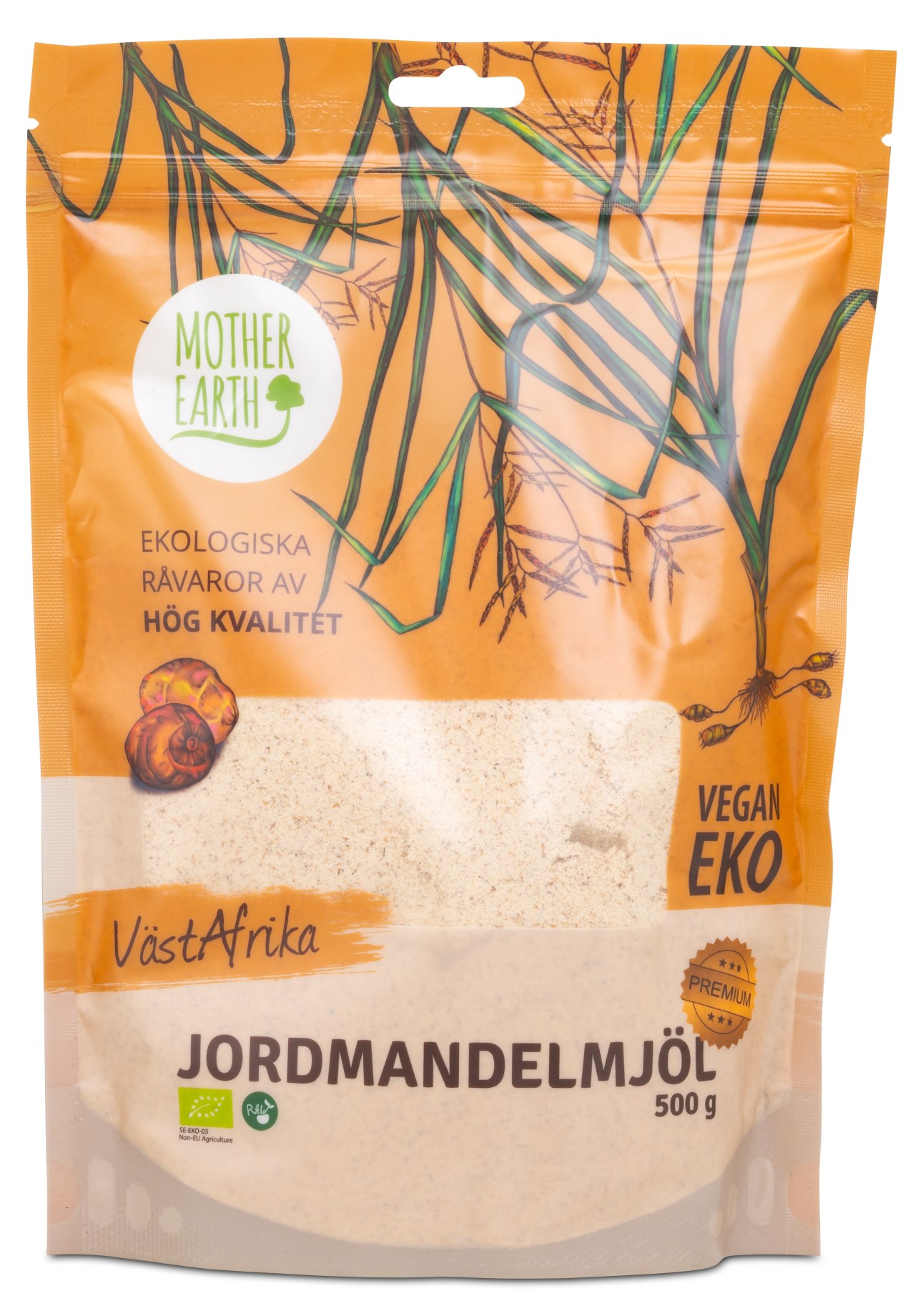 Mother Earth Maamantelijauho on gluteeniton jauho, jolla on monia käyttötarkoituksia. Maamanteli sekoitetaan usein eräänlaiseksi manteliksi tai pähkinäksi, mutta se on itse asiassa ruohokasvi nimeltään kultasädekaisla, jonka mukuloita kutsutaan tiikeripähkinöiksi. Tämän vuoksi maamanteli tunnetaan myös nimellä tiikeripähkinät. Tämän erikoisen juurikasvin mukuloita kutsutaan tiikeripähkinöiksi, sillä nämä herneen kokoiset pallot ovat raidallisia kuin tiikeri.