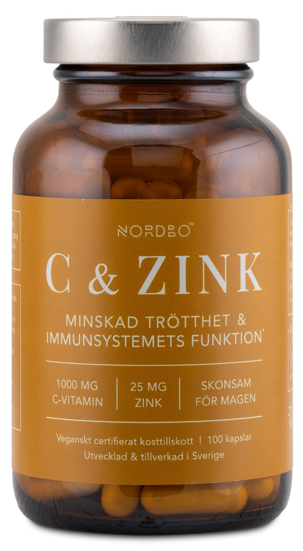 Nordbo C-vitamiini & Sinkki on ravintolisä, joka sisältää helposti imeytyvässä muodossa C-vitamiinia ja sinkkiä. Lisäravinteessa on happoneutraalia ja vahvaa C-vitamiinia kalsiumaskorbaatin muodossa, joka on sekä biologisesti saatavaa että vatsaystävällistä. Sinkki on sinkkipikolinaatin muodossa, mikä tekee siitä erittäin helposti imeytyvän. Sekä C-vitamiini että sinkki edistävät immuunijärjestelmän normaalia toimintaa, auttavat ylläpitämään normaalia luustoa sekä suojaavat soluja oksidatiiviselta stressiltä. Nordbo C-vitamiini & Sinkki on Suomessa valmistettu, vegaaninen ja Djurens Rätt -järjestön hyväksymä.