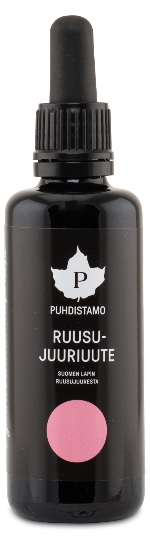 Puhdistamo Premium Ruusujuuriuute on uutetta ruusujuuresta, voimakkaasta rohdoskasvista, joka kasvaa luonnonvaraisena ja on rauhoitettu Suomessa. Ruusujuuri, jota kutsutaan myös "pohjolan ginsengiksi", on mehikasvi, jota on käytetty tuhansia vuosia sen arvostettujen ominaisuuksien vuoksi. Puhdistamon Premium Ruusujuuri tulee Pohjois-Suomesta, missä se on saanut kasvaa luonnonvaraisena kokonaiset kuusi vuotta ennen sadonkorjuuta. Ruusujuuri on adaptogeeninen kasvi, mikä tarkoittaa, että se edistää kehon sopeutumiskykyä. Ruusujuuriuutetta voidaan käyttää monin eri tavoin, esimerkiksi tiputtamalla muutama tippa aamukahvin joukkoon, puuroon tai pelkästään lasilliseen vettä.