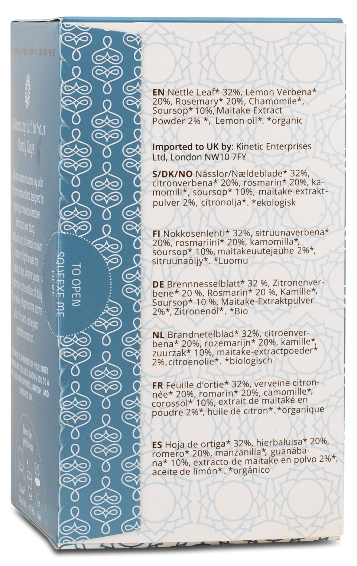 Nauti rauhallisesta ja virkistävästä hetkestä huolellisesti koostetun nokkosen, kamomillan ja maitakeen sekoituksesta, joka on luotu kohottamaan mielialaa ja tuomaan mielenrauhaa. Tämä tee on valmistettu tarjoamaan miellyttävä kokemus myös niinä päivinä, jotka tuntuvat raskailta. Tarvitsetpa sitten apua arjen stressin hallintaan tai kaipaat pientä sisäistä rauhaa, voi Herbal Te Moody Blues olla seuralaisesi. Maassa asuvan, kukkaisen maun ja sitruksisen vivahteen ansiosta syntyy virkistävä kokemus.