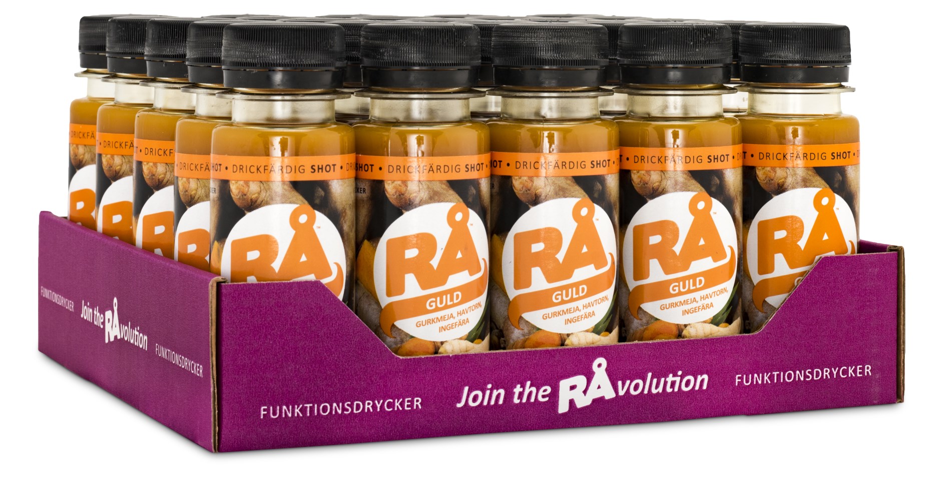 Rå Kurkuma on kultainen hedelmäjuoma, joka on suunniteltu erityisesti sinulle, joka välität siitä, mitä juot. Rå Gurkmeja on valmistettu hedelmistä ja mausteista, jotka yhdessä tarjoavat useita ravintoaineita ja täyteläisen makuelämyksen. Juomaan sisältyy happamia tyrnimarjoja, makeita omenia ja päärynöitä sekä inkivääriä, joka antaa lisäpotkua. Mehun kullankeltainen väri tulee kurkumasta ja porkkanasta. RÅ Kurkuma on makeuttamaton ja luonnollinen - täysin ilman lisäaineita.