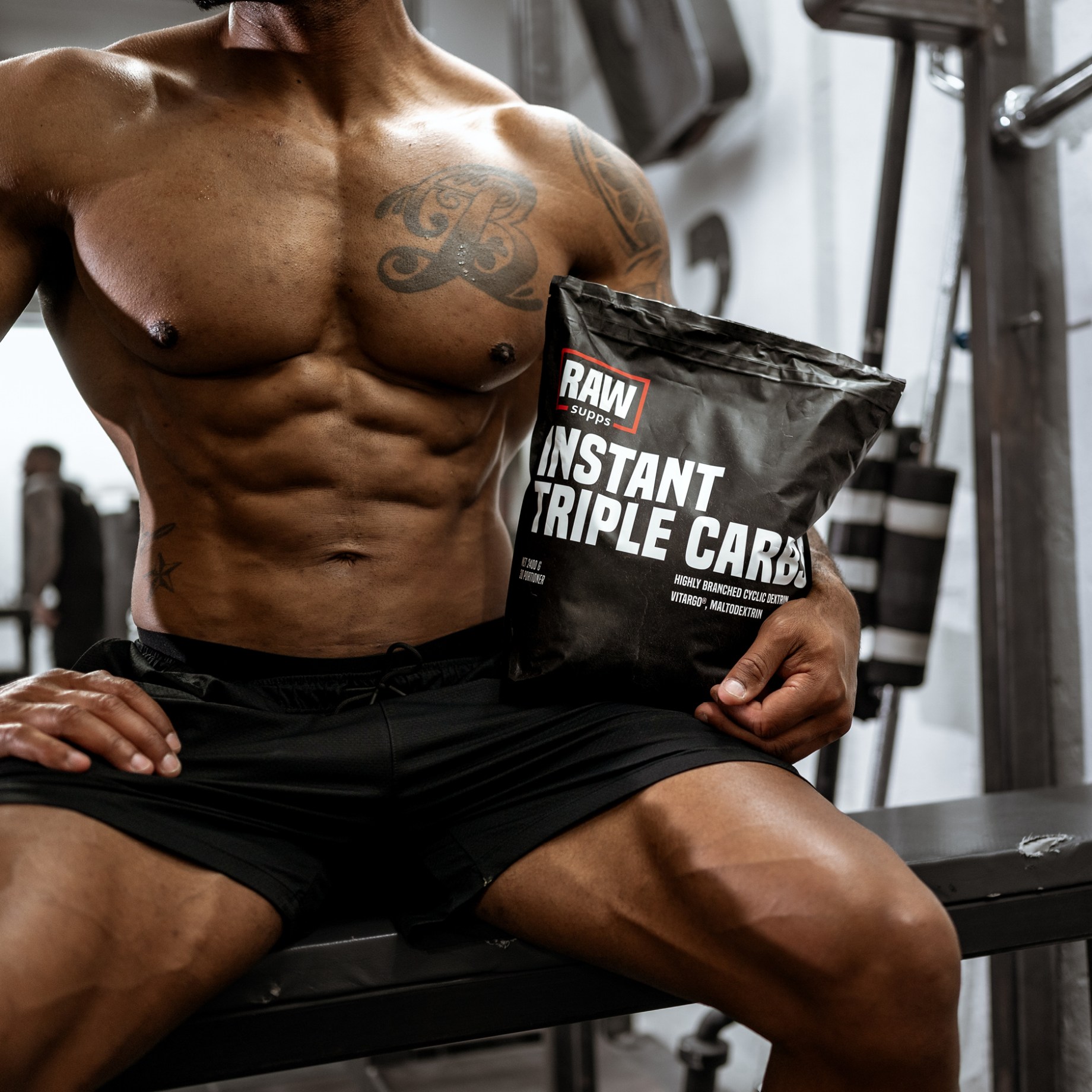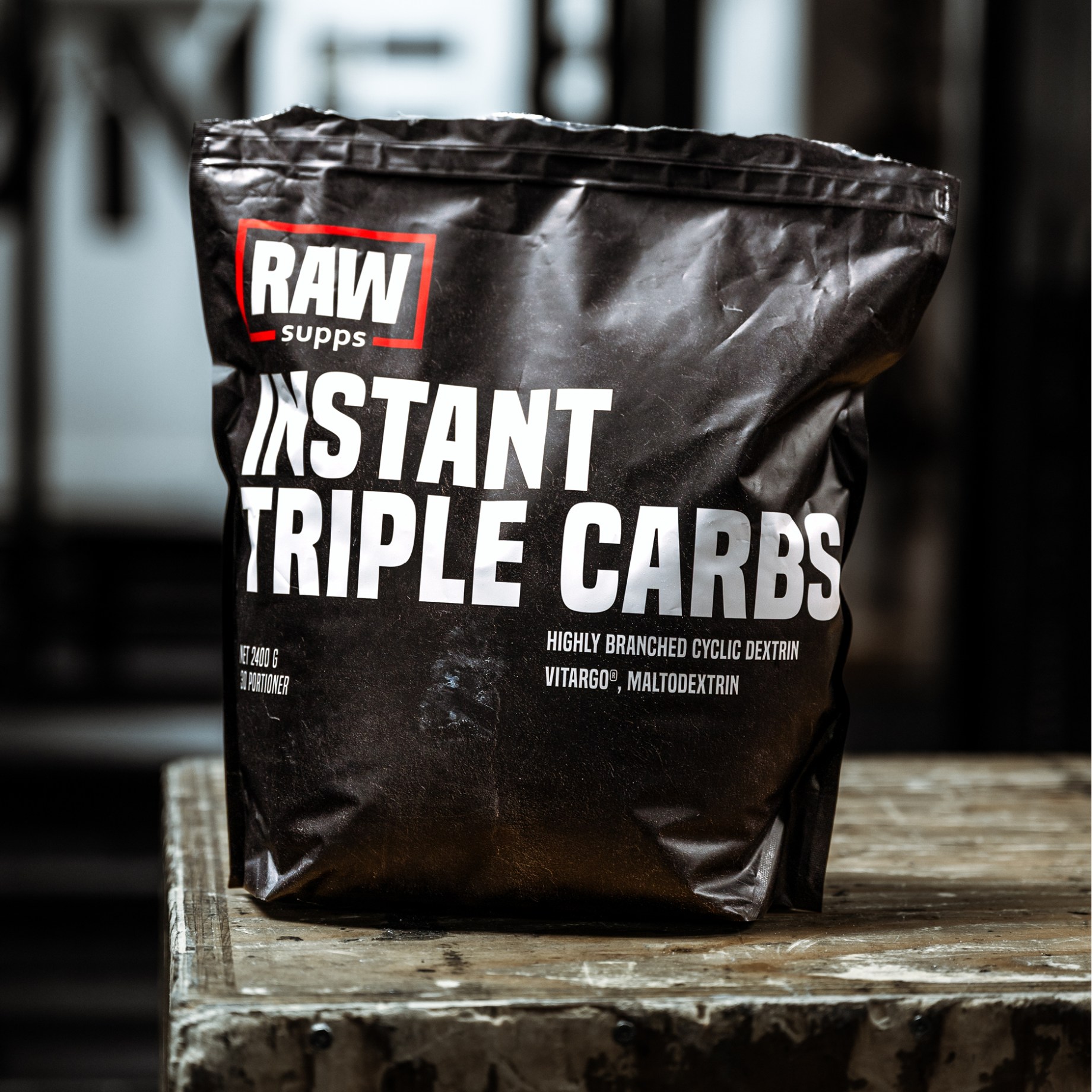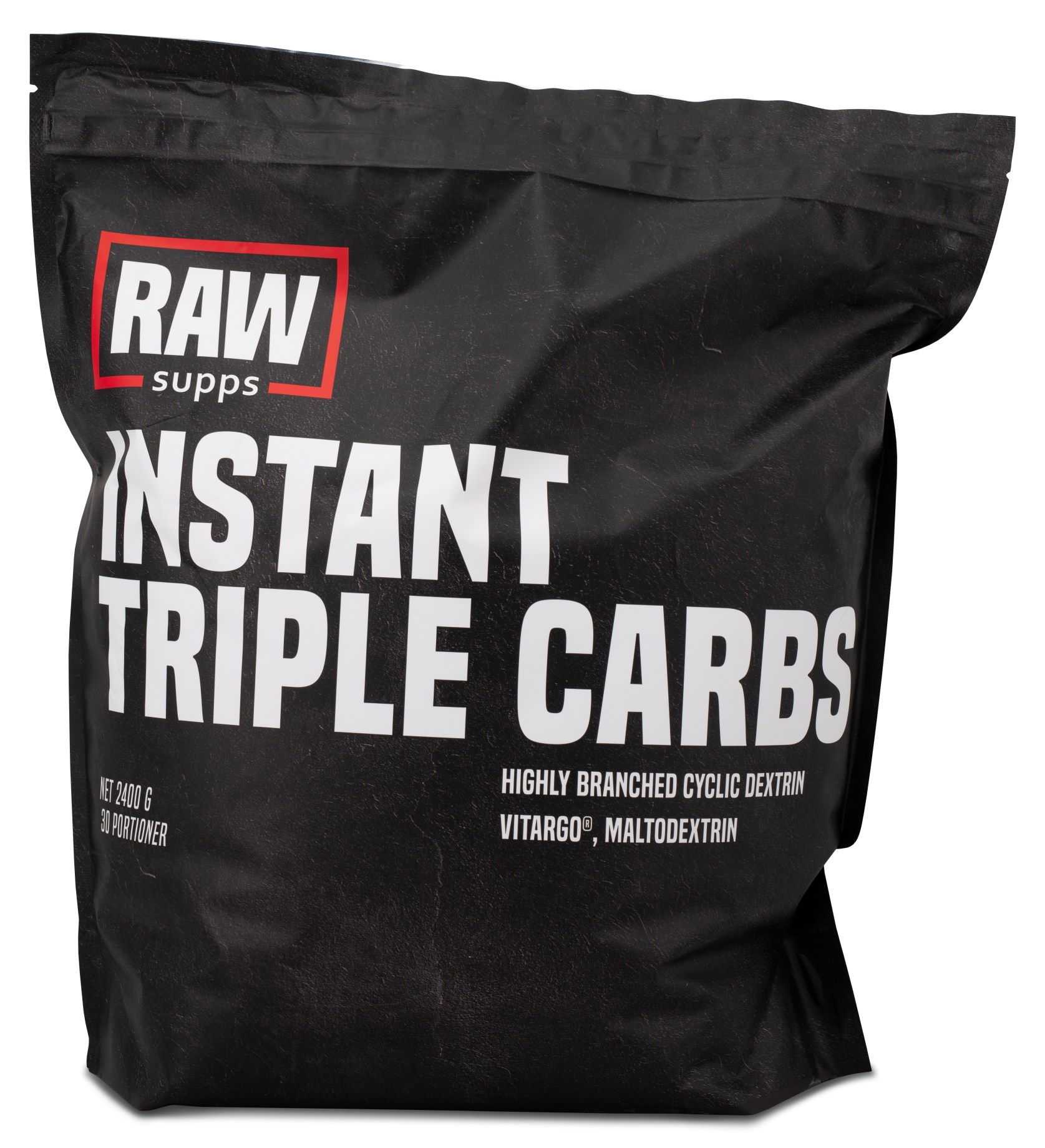 RAW Instant Triple Carbs sisältää maltoa, Vitargo®a ja erittäin haarautunutta syklisen dekstriinin. Nämä kolme tehokasta hiilihydraattia auttavat kehoa täydentämään glykogeenivarastot nopeasti ja hellävaraisesti.